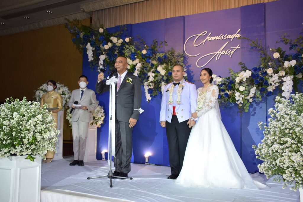 เมื่อวันที่ 11 มีนาคม 2565 ที่ผ่านมา ที่โรงแรมดิเอมเมอรัลด์ รัชดา : พลเอกณัฐ อินทรเจริญ อดีตปลัดกระทรวงกลาโหม เป็นประธานพิธีในงานเลี้ยงฉลองพิธีมงคลสมรสระหว่าง ร้อยโทหญิงชนิษฐ์สดา ลัยวิรัตน์ บุตรสาว พลโท กฤษณ์ และคุณแม่พัชรพร ลัยวิรัตน์ กับ ร้อยตรีอภิสิทธิื ตันติพันธุ์วดี บุตรชาย คุณพ่อเชษฐวิทย์ ตันติพันธุ์วดี และคุณแม่ฐานิดา เดชาหนู ซึ่งช่วงเช้ามีพิธีมงคลสมรสอย่างเรียบง่ายภายใต้การควบคุมของ ศคบ. อย่างเคร่งครัด มีแขกผู้มีเกียรติพร้อมญาติสนิทและเพื่อนร่วมงานทั้งสองฝ่ายมาร่วมแสดงความยินดีอย่างชื่นมื่น