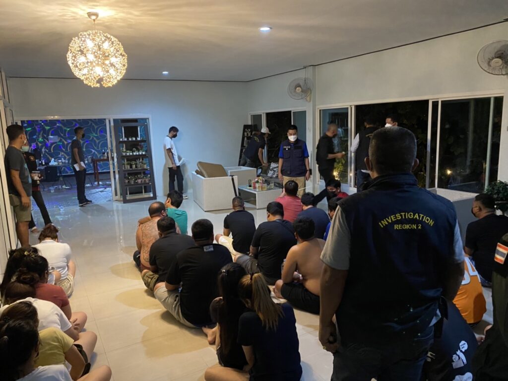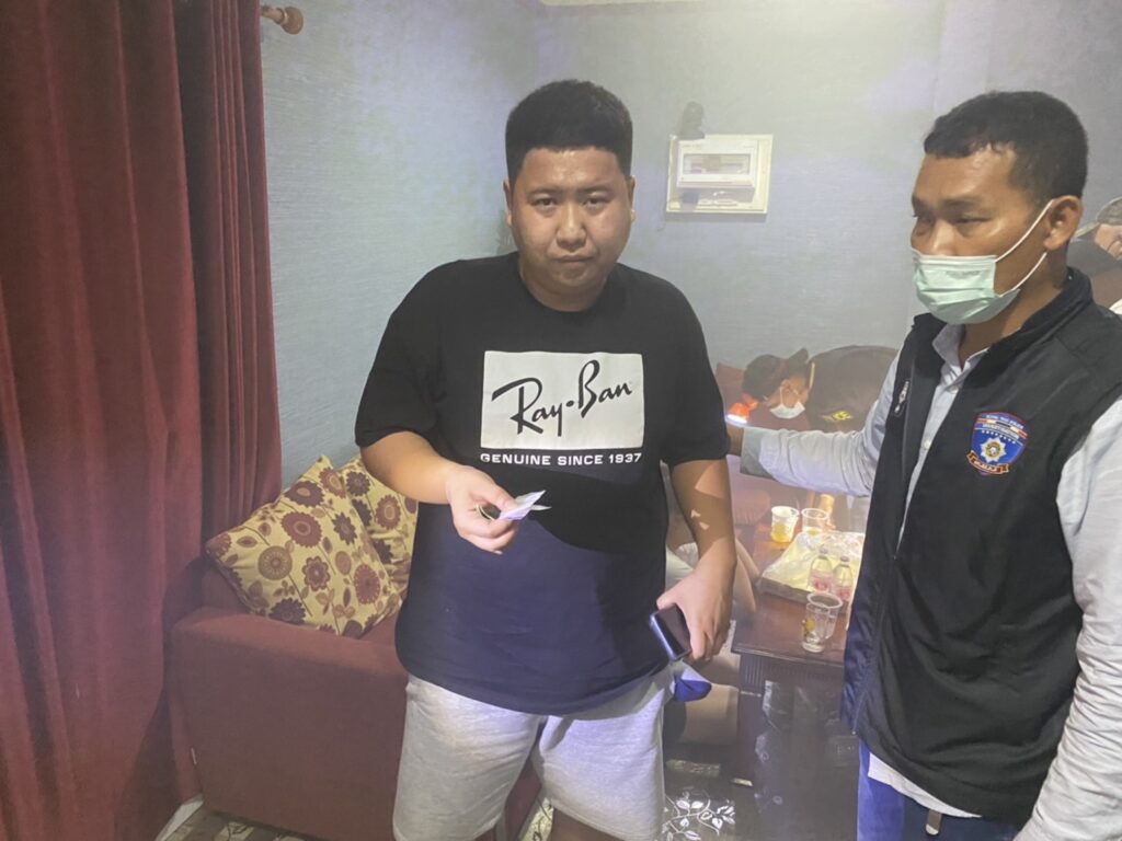ซึ่ง พ.ต.อ.บัญชา คล้ายน้อย ผกก.สืบสวน 2 บก.สส.ภ.2 กับพวกได้ประสานกก.สส.ภ.จว.จันทบุรี,สภ.เขาสมิง และ ฝ่ายปกครอง อ.เขาสมิง นำกำลังเดินทางไปตรวจสอบ โดยจัดเจ้าหน้าที่ตำรวจนอกเครื่องแบบไปซุ่มดูและสังเกตการณ์โดยรอบบริเวณอาคาร ซึ่งประตูทางเข้าเปิดไว้ ส่วนกำลังที่เหลือได้ปิดล้อมไว้โดยรอบบริเวณด้านนอกเพื่อป้องกันการหลบหนี เมื่อชุดที่ซุ่มสังเกตการณ์ด้านในรายงานว่า มีการมั่วสุมเสพยาเสพติดกันอยู่จริง โดยรวมตัวกันในลักษณะไม่เว้นระยะห่างตามมาตรการป้องกันการแพร่ระบาดของเชื้อไวรัสโควิด-19 จึงส่งสัญญาณให้ชุดปฏิบัติการตามแผน โดยชุดที่แต่งกายนอกเครื่องแบบและซุ่มดูอยู่ ได้จู่โจมเข้าไปแสดงตัวเป็นเจ้าพนักงานตำรวจขอตรวจค้น เมื่อทั้งหมดทราบว่าเป็นเจ้าพนักงานตำรวจ มีท่าทีตกใจและพยายามหลบหนี เจ้าพนักงานตำรวจชุดที่โอบรอบไว้ จึงร่วมกันเข้าไปควบคุมตัวไว้ได้ทั้งหมด จากการตรวจค้นพบยาเสพติดกลางและอาวุธปืนดังกล่าวอยู่ในครอบครองของกลุ่มชายหญิงที่มาร่วมมั่วสุ่มเสพยากันภายในบ้านหลังดังกล่าว