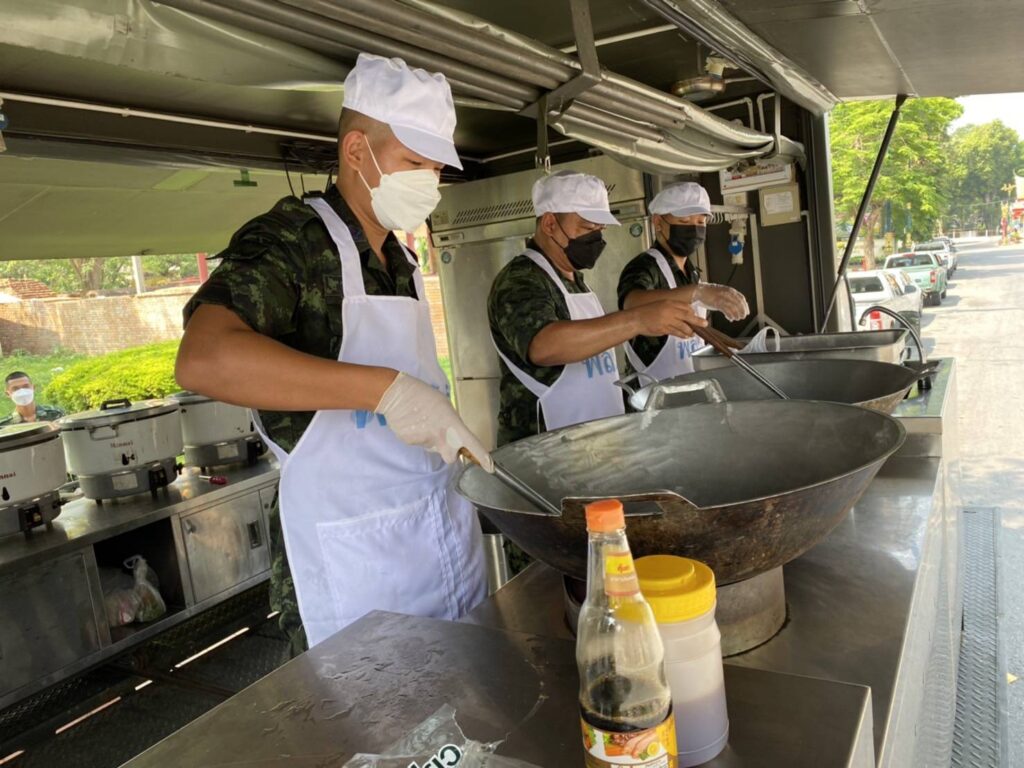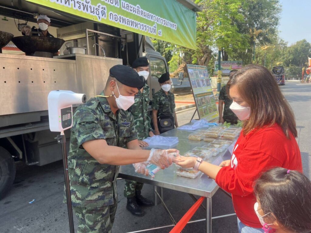 วันนี้ (13 มี.ค.65) พล.ร.9 โดย ป.9 พัน.9 จัดกิจกรรม “กองทัพบกช่วยเหลือประชาชน” ซึ่งได้นำรถครัวสนามเคลื่อนที่พร้อมด้วยกำลังพล จำนวน 6 นาย ทำการประกอบอาหารเพื่อจำหน่ายในราคาถูก โดยมี รายการอาหาร จำนวน 2 รายการ ได้แก่
