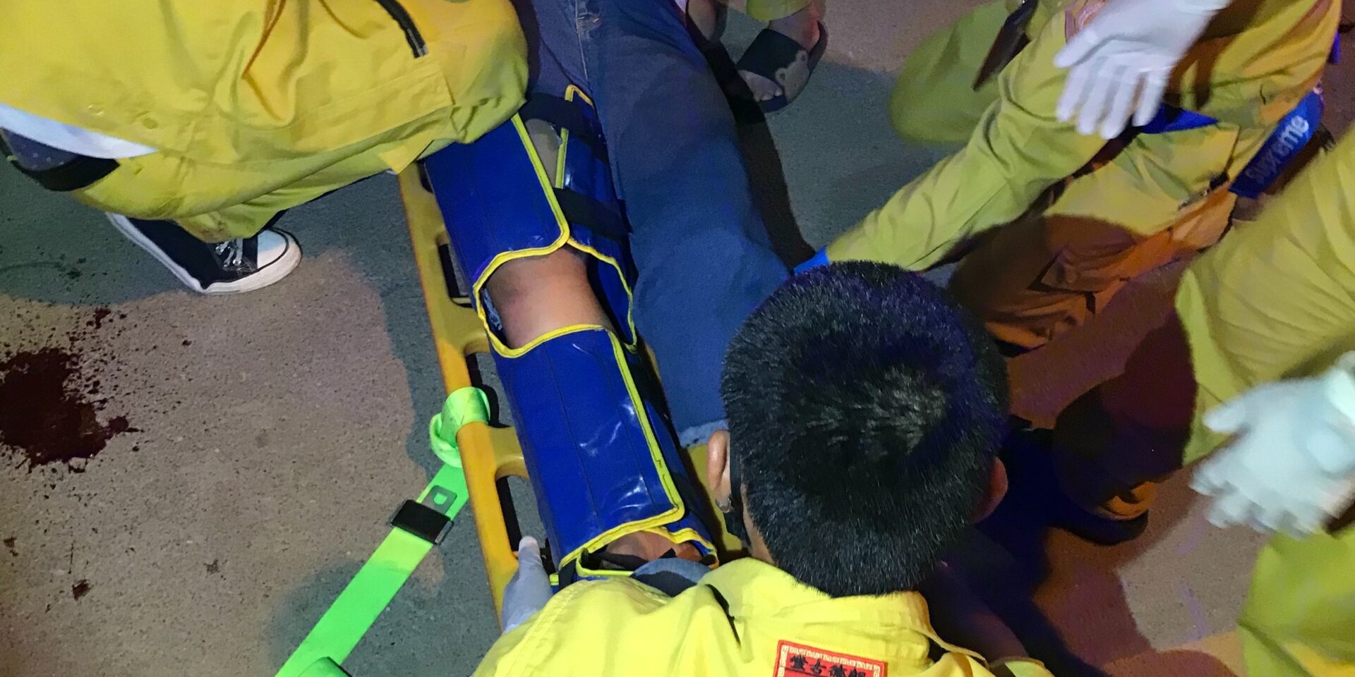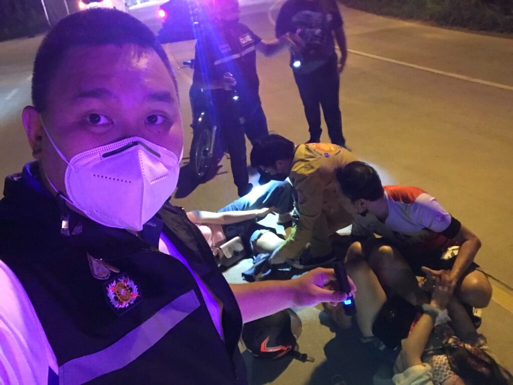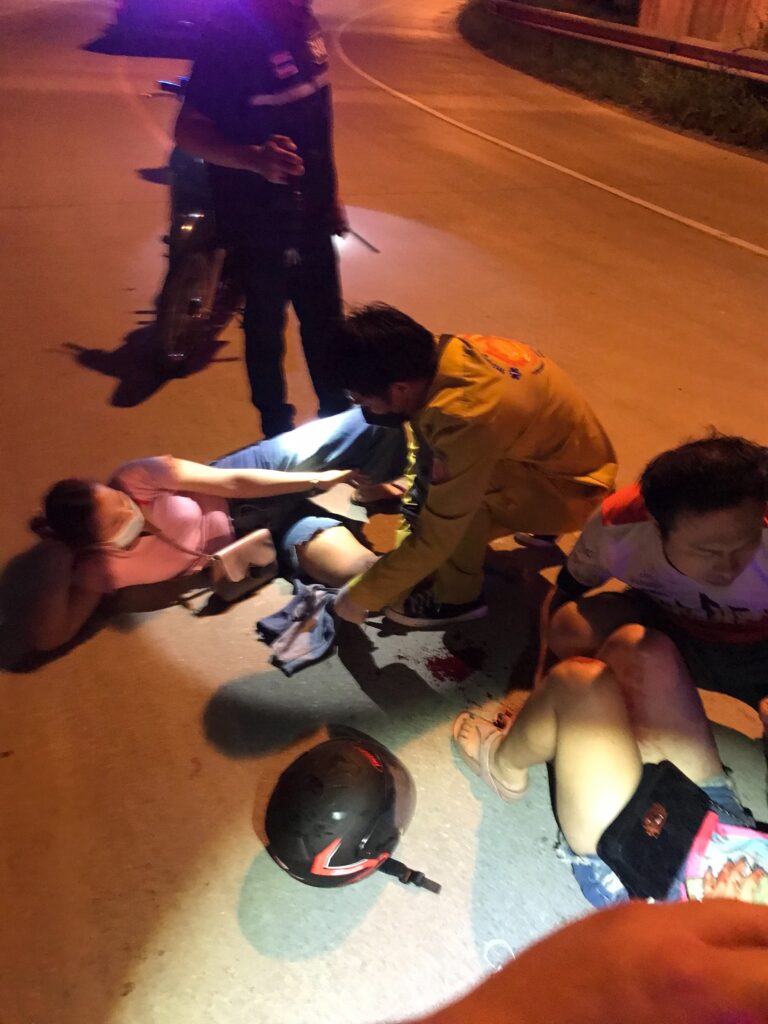 รายที่ 1 มีอาการคางแตก เลือดไหล และแผลถลอกเล็กน้อย จึงได้ปฐมพยาบาลห้ามเลือดเบื้องต้น
