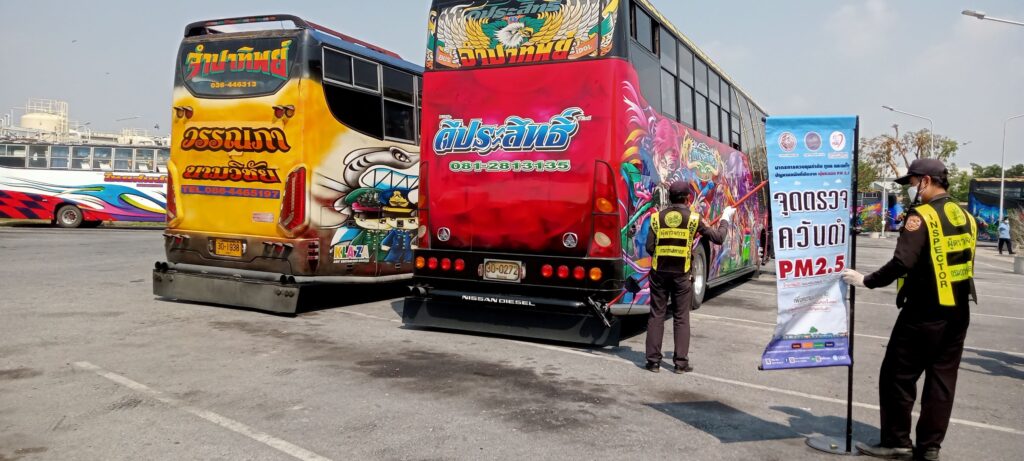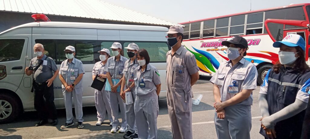 มาทำการตรวจสภาพรถ Big bus ที่ผู้ประกอบการรถบัส นำมาบริการ โดยจะตรวจเชิงรุก โดยให้มา ภายในบริเวณลานจอดรถในโรงงาน