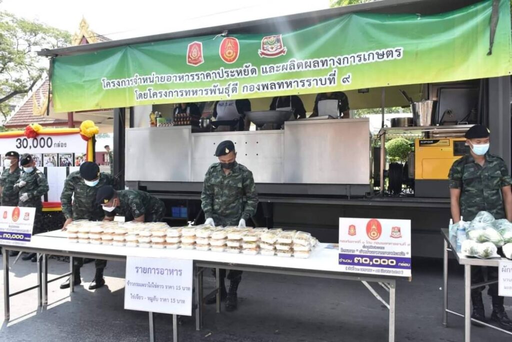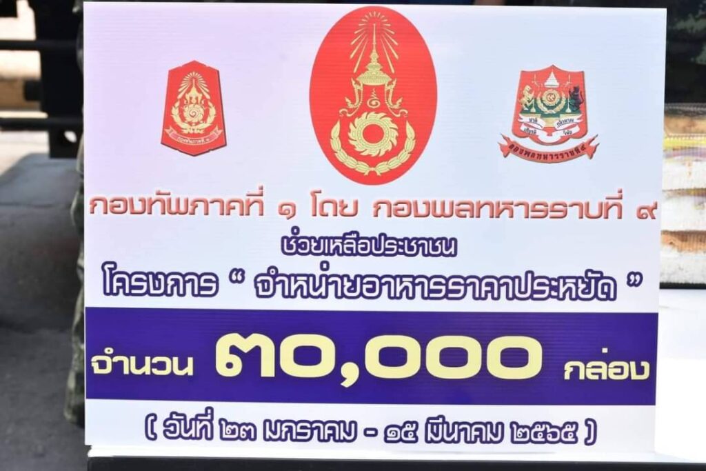 ซึ่งโครงการนี้ได้เริ่มดำเนินการมาตั้งแต่วันที่ 23 มกราคม - 15 มีนาคม 2565 โดยได้จำหน่ายอาหารกล่องปรุงสุกในราคาถูกเพียง 15 - 20 บาท จำนวนรวมทั้งหมด 30,000 กล่อง และยังนำผัก ปลอดสารพิษที่ปลูกภายในกองพลทหารราบที่ 9 มาจำหน่ายในราคาถูกเพื่อช่วยเหลือบรรเทาความเดือดร้อนให้กับประชาชนอีกด้วย