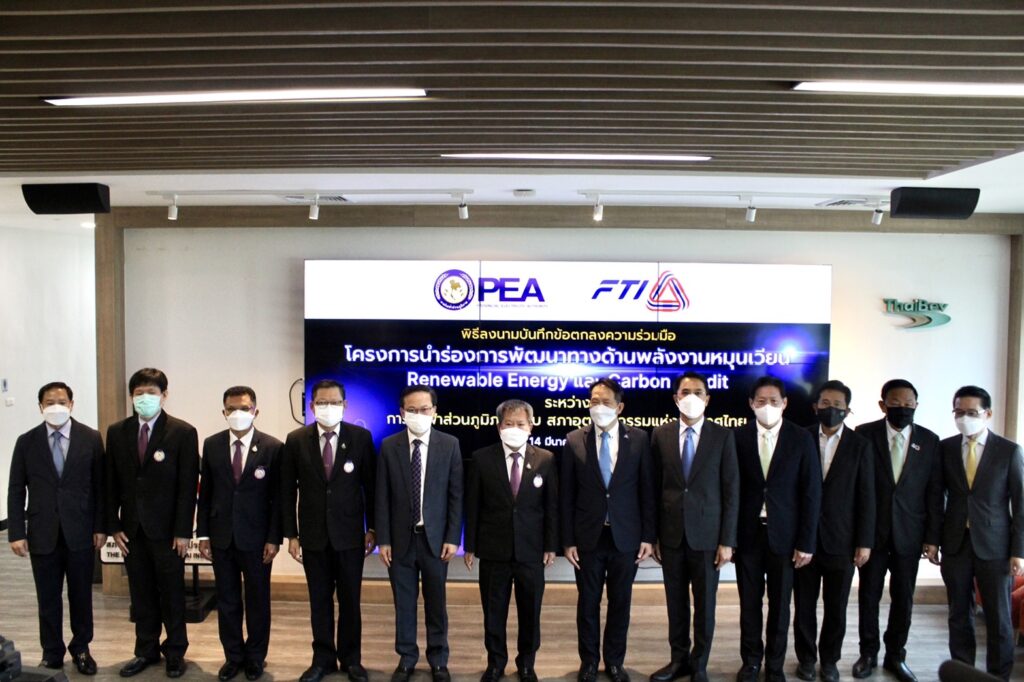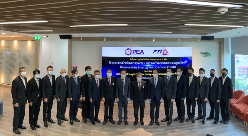 เมื่อวันจันทร์ที่ 14 มีนาคม 2565 สภาอุตสาหกรรมแห่งประเทศไทย (ส.อ.ท.) จับมือ การไฟฟ้าส่วนภูมิภาค ประกาศโครงการนำร่องการพัฒนาทางด้านพลังงานหมุนเวียน (Renewable Energy: RE) และ Carbon Credit เพื่อจัดทำฐานข้อมูลและการรับรองการผลิตไฟฟ้า RE และ Carbon Credit โดยเชื่อมต่อกับ Platform ของ (ส.อ.ท.) เพื่อให้สามารถใช้เป็นต้นแบบตามแนวทางการพัฒนาเทคโนโลยี และการประยุกต์ใช้ RE ตลอดจนขยายผลการศึกษาและการพัฒนาไปสู่โครงการอื่นๆ ต่อไป เช่น โครงการ ERC Sandbox ระยะที่ 2 ในการตอบโจทย์และแก้ไขปัญหาของการค้าการส่งออกของประเทศไทยเป็นสำคัญ โดยมี นายสุพันธุ์ มงคลสุธี ประธาน (ส.อ.ท.),นายสุวิทย์ ธรณินทร์พานิช ประธานกลุ่มอุตสาหกรรมพลังงานหมุนเวียน และประธานคณะทำงานส่งเสริมและสนับสนุนการลดก๊าซเรือนกระจกของภาคอุตสาหกรรม พร้อมด้วย นายศุภชัย เอกอุ่น ผู้ว่าการการไฟฟ้าส่วนภูมิภาค,ดร.บัณฑูร เศรษฐศิโรตม์ กรรมการกำกับกิจการพลังงาน (กกพ.) และดร.กิติพงค์ พร้อมวงค์ ผู้อำนวยการสำนักงานสภานโยบายการอุดมศึกษาวิทยาศาสตร์ วิจัยและนวัตกรรมแห่งชาติ (สอวช.) ร่วมประกาศความร่วมมือขับเคลื่อนโครงการฯ ณ ห้อง PTT GROUP (1012) ชั้น 10 สภาอุตสาหกรรมฯ ซึ่งจัดขึ้นภายใต้มาตรการการป้องกันการแพร่ระบาดของโรคติดเชื้อไวรัสโคโรนา 2019 (COVID-19) ตามประกาศกระทรวงสาธารณสุข อย่างเคร่งครัด