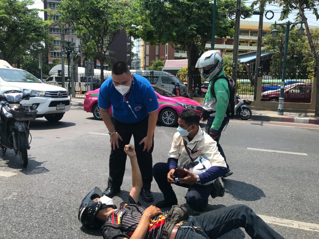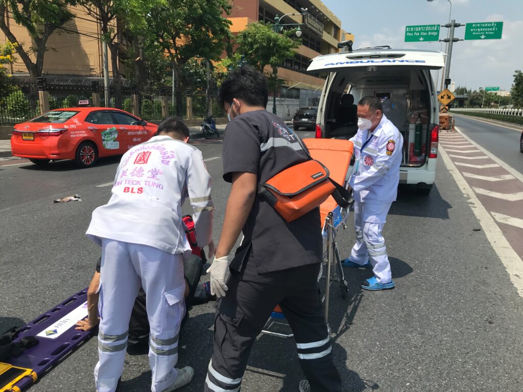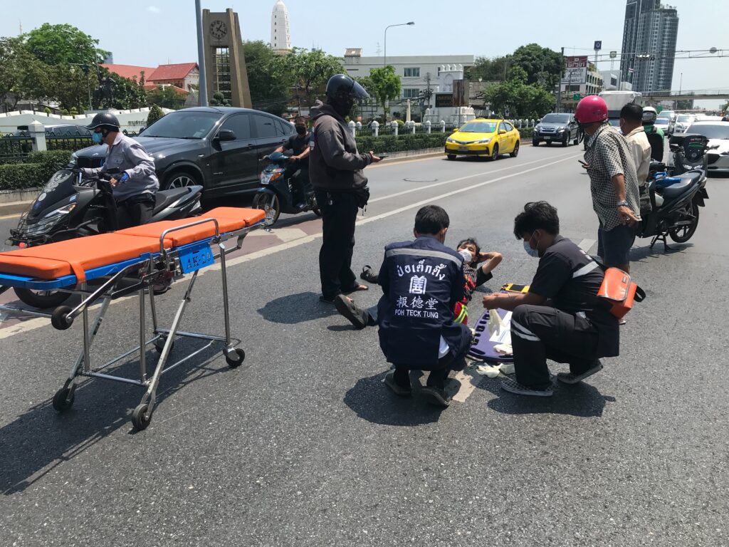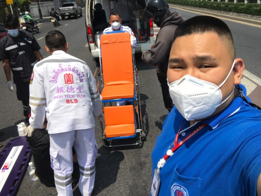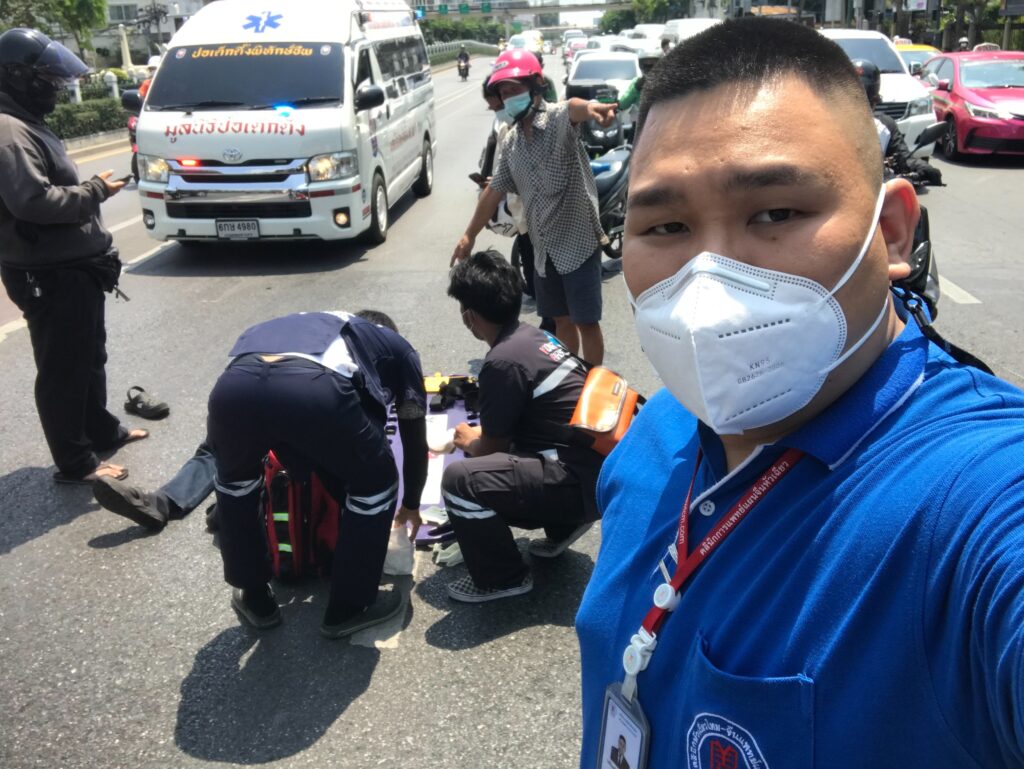 จึงได้เข้าช่วยเหลือโดยดำเนินการอำนวยการจราจรและช่วยปฐมพยาบาลรวมถึงประสานงานกู้ชีพ มูลนิธิป่อเต็กตึ๊ง โทร.1418 มาทำการช่วยเหลือและเคลื่อนย้ายผู้ป่วยนำส่งโรงพยาบาลตามสิทธิของผู้ป่วยครับ