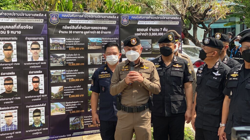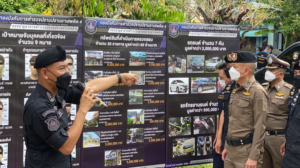 เพื่อจับกุมผู้ต้องหาเครือข่ายยาเสพติด โดยสามารถติดตามจับกุมผู้ต้องหาตามหมายจับ 6 ราย พร้อมของกลางยาบ้า 16,800 เม็ด,ยาอี 300 เม็ด,เคตามีน 1.99 กรัม และตรวจยึดทรัพย์สิน ได้แก่ บ้านและที่ดินหลายรายการ,รถยนต์ 7 คัน,รถจักรยานยนต์ 6 คัน,เงินสด 900,000 บาท,บัญชีธนาคาร และบัตรเอทีเอ็มจำนวนมาก รวมมูลค่ากว่า 64 ล้านบาท