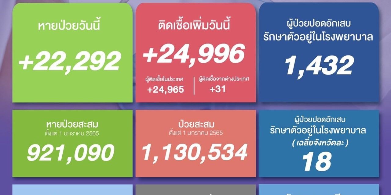 หายป่วยสะสม 921,090 ราย (ตั้งแต่ 1 มกราคม 2565)
