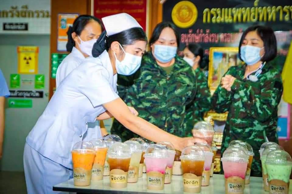 วันที่ 18 มีนาคม 2565 ที่โรงพยาบาลค่ายศรีสองรัก ตำบล ศรีสองรัก อำเภอเมือง จังหวัดเลย กองกำลังสุรศักดิ์มนตรี โดย คุณสิริกัญญา นิลเนตร ประธานสมาคมแม่บ้านทหารบก สาขา กรมทหารพรานที่ 21 และสมาชิกแม่บ้านพร้อมด้วยกำลังพลของหน่วยตบเท้าเสิร์ฟเครื่องดื่มเย็นๆ จากร้าน PRAN 21 COFFEE ซึ่งเป็นร้านจำหน่ายเครื่องดื่มกาแฟสวัสดิการของหน่วยกรมทหารพรานที่ 21 นำมาส่งมอบแทนน้ำใจเพื่อเป็นกำลังใจให้นักรบชุดขาว – อัศวินเสื้อกาวน์ แทนคำขอบคุณที่เสียสละอันยิ่งใหญ่ของแพทย์ พยาบาล และบุคลากรทางการแพทย์ ของโรงพยาบาลค่ายศรีสองรัก ที่ผ่านมาต้องรับมือกับภาระอันยิ่งใหญ่ อุตส่าห์ทำงานหนักในระยะที่ผ่านมา รวมถึงในอนาคต ผู้ซึ่งเสียสละความสุขส่วนตนเพื่อให้ประชาชนผ่านพ้นอย่างปลอดภัยในสถานการณ์การแพร่ระบาด โดยต้องทุ่มเทแรงกายแรงใจตรวจรักษา เฝ้าระวัง ตลอดจนควบคุมการระบาด ให้ส่งผลกระทบกับประชาชนให้น้อยที่สุด ซึ่งเป็นด่านหน้าในการป้องกัน รักษา ดูแล กำลังพลในค่ายศรีสองรัก รวมถึงประชาชนทั่วไป ในช่วงการแพร่ระบาดของไวรัสโควิด-19 ด้วยหัวใจ