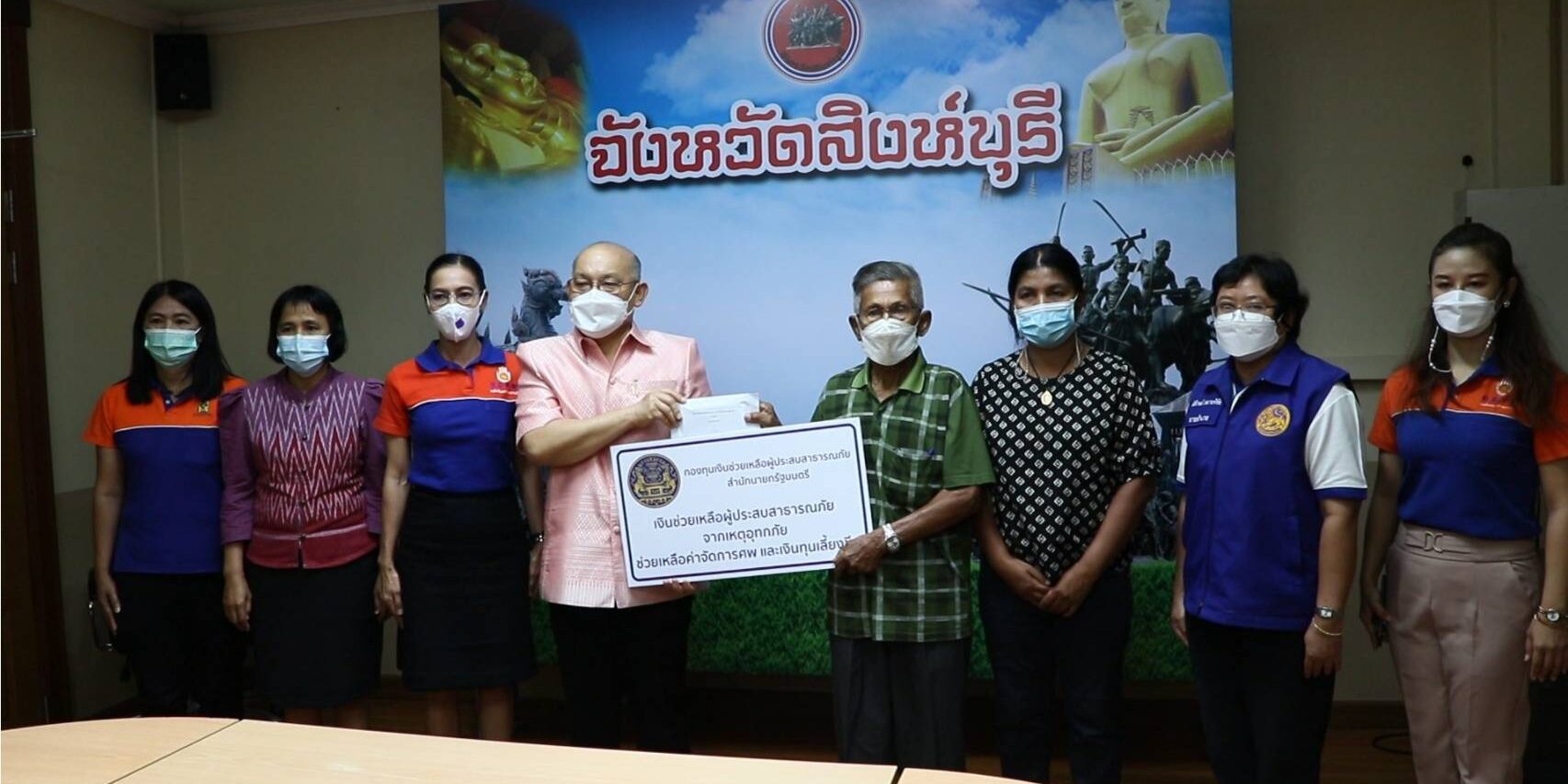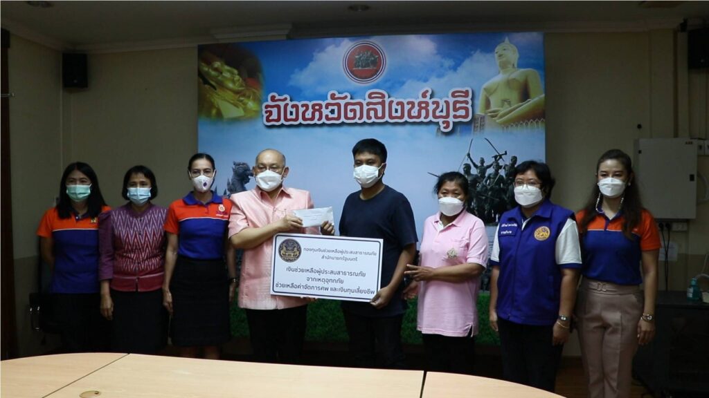 วันอังคารที่ 22 มีนาคม พ.ศ. 2565 เวลา 09.00 น. นายชัยชาญ สิทธิวิรัชธรรม ผู้ว่าราชการจังหวัดสิงห์บุรี เป็นประธานมอบเงินกองทุนเงินช่วยเหลือผู้ประสบสาธารณภัย สำนักนายกรัฐมนตรี ประจำจังหวัดสิงห์บุรี ให้กับครอบครัวผู้เสียชีวิต จำนวน 2 ราย ในพื้นที่อำเภออินทร์บุรี จังหวัดสิงห์บุรี รายละ 80,000 บาท เพื่อเป็นการเยียวยาครอบครัวผู้เสียชีวิตจากเหตุอุทกภัย โดยมี นางสาวนงเยาว์ เทพศิริ หัวหน้าสำนักงานป้องกันและบรรเทาสาธารณภัยจังหวัดสิงห์บุรี นายอำเภออินทร์บุรี หัวหน้าสำนักงานจังหวัดสิงห์บุรี และเจ้าหน้าที่ผู้เกี่ยวข้องเข้าร่วมพิธีมอบเงินฯ ตามนโยบายนายกรัฐมนตรีที่ให้เร่งช่วยเหลือประชาชนที่เดือดร้อนจากสาธารณภัยเพิ่มเติม นอกจากการช่วยเหลือตามปกติของส่วนราชการแล้ว เพื่อบรรเทาความเดือดร้อนและสร้างขวัญกำลังใจแก่ผู้ประสบสาธารณภัยและครอบครัวผู้ประสบสาธารณภัยที่เกิดจากเหตุการณ์ภัยพิบัติต่าง ๆ ทั่วประเทศ
