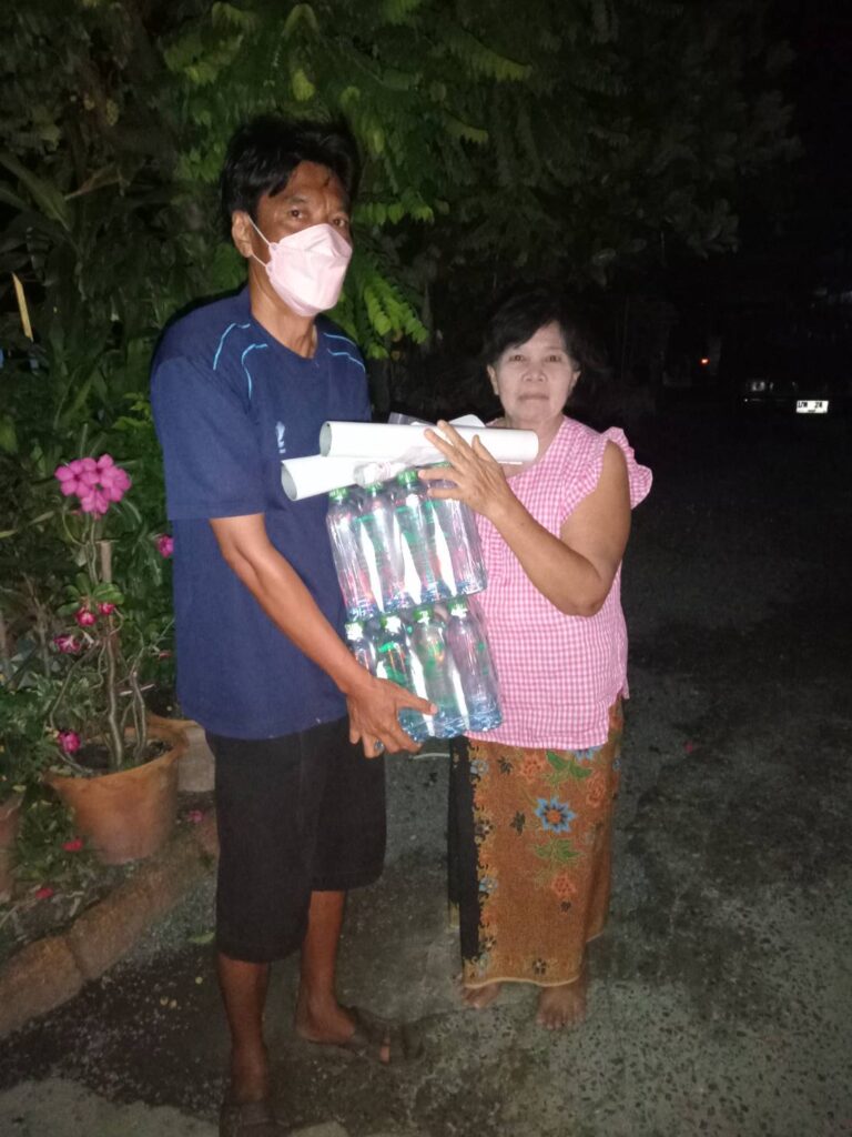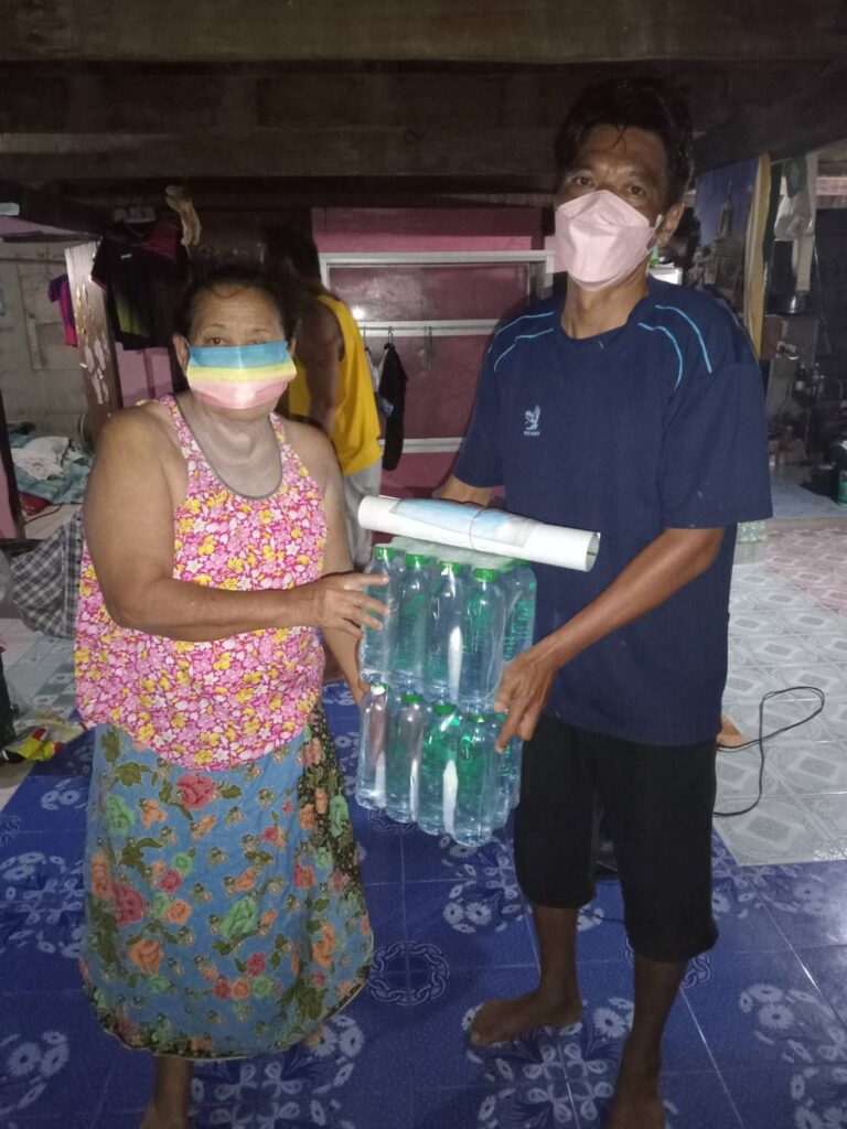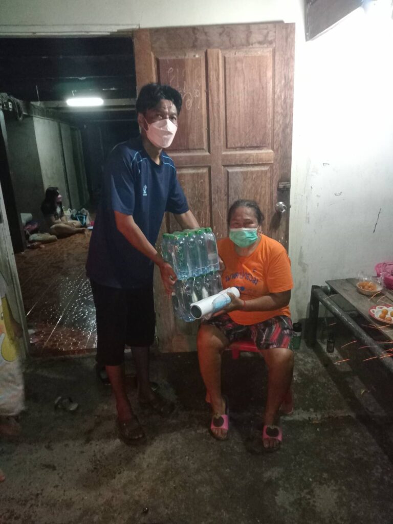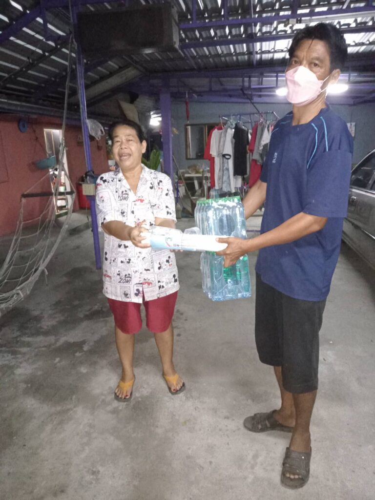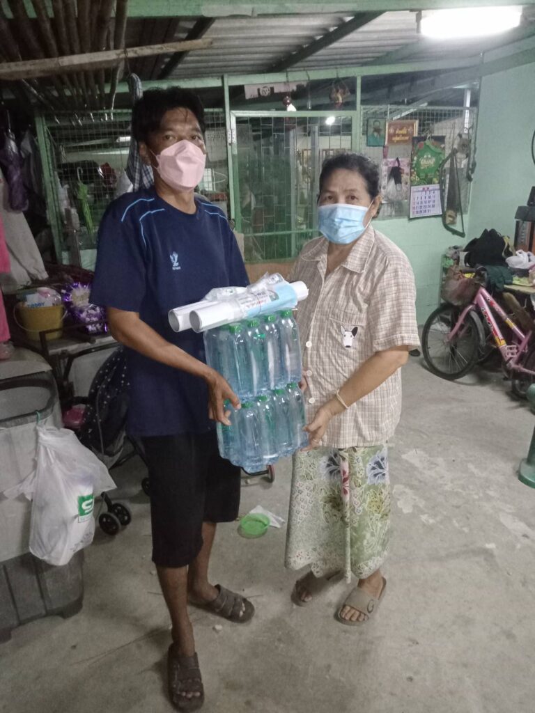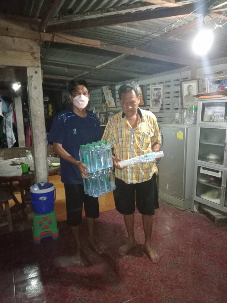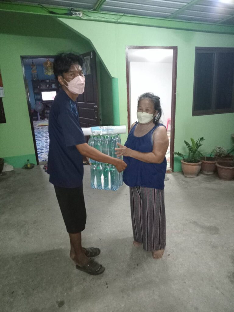 ลงพื้นที่มอบนำ้ดื่ม ให้ผู้กักตัวโดยได้รับการประสาน (แจ้งเหตุ ) จากคุณปิยะพร มะคธ อาสาสมัครหมู่บ้าน โดยการแสกนคิวอาร์โค้ดใน line ที่อยู่ในปฏิทิน ให้ ส.ส.ลงพื้นที่ ช่วยเหลือเบื้องต้น ในเรื่อง “ น้ำดื่ม” ในช่วงต้องพักรักษาตัว จากการแพร่ระบาดของโรคโควิด19 อยู่ในขณะนี้