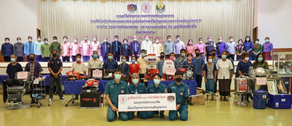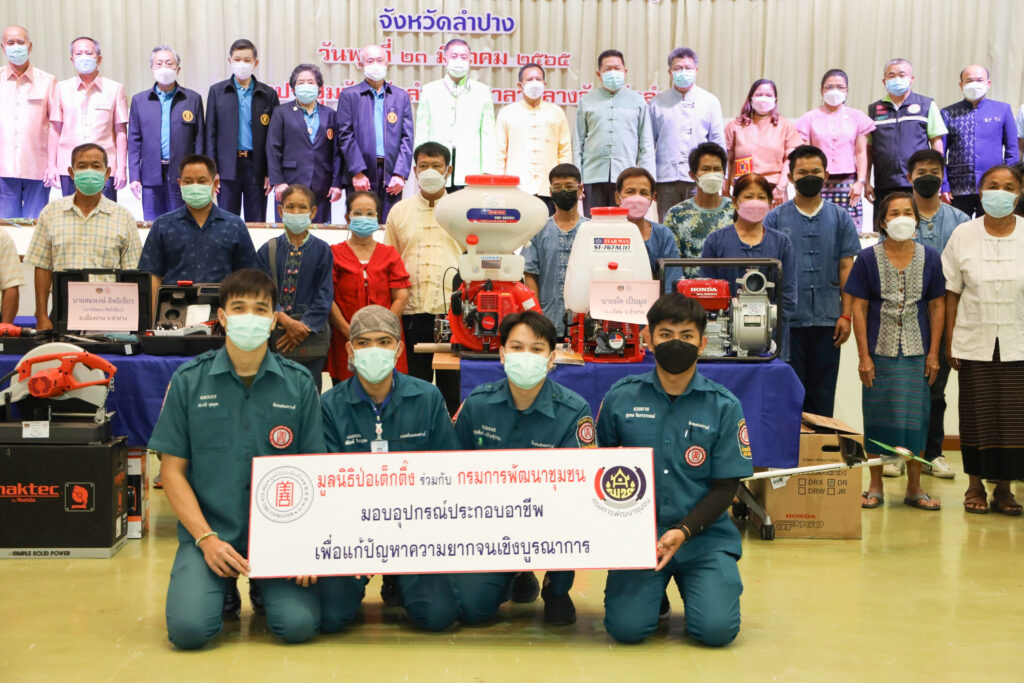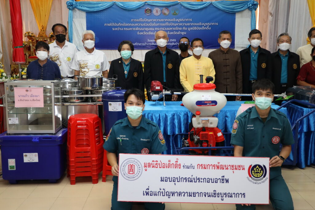 วานนี้ (วันพุธที่ 23 มีนาคม 2565 ) มูลนิธิป่อเต็กตึ๊ง โดย นายสุรพงษ์ เตชะหรูวิจิตร กรรมการและรองเลขาธิการ เป็นประธานในพิธี พร้อมด้วย นางจินดา บุญลาภทวีโชค กรรมการตรวจสอบ นายวิชิต ชินวงศ์วรกุล กรรมการ และนายชาญกิจ วิทยาวรากรณ์ กรรมการ ร่วมในพิธีมอบอุปกรณ์ประกอบอาชีพให้กับครัวเรือนยากจนในพื้นที่จังหวัดเชียงใหม่ ลำพูน และลำปาง รวม 27 ครัวเรือน คิดเป็นมูลค่า จำนวน 386,510 บาท (สามแสนแปดหมื่นหกพันห้าร้อยสิบบาทถ้วน) เพื่อส่งเสริมและสนับสนุนอาชีพแก่ครัวเรือนยากจนสามารถประกอบอาชีพเลี้ยงตนเองและครอบครัว ดำเนินชีวิตตามหลักปรัชญาเศรษฐกิจพอเพียง ภายใต้ ”บันทึกข้อตกลงความร่วมมือการแก้ไขปัญหาความยากจนเชิงบูรณาการ” ร่วมกับกรมการพัฒนาชุมชน กระทรวงมหาดไทย โดยมี นายสิธิชัย จินดาหลวง ผู้ว่าราชการจังหวัดลำปาง นายวรญาณ บุญณราช รองผู้ว่าราชการ จังหวัดเชียงใหม่ นายนิวัติ น้อยผาง รองอธิบดีกรมการพัฒนาชุมชน เป็นประธานร่วมในพิธี ณ บริเวณหอประชุมที่ว่าการอำเภอสันป่าตอง อำเภอสันป่าตอง จังหวัดเชียงใหม่ และ หอประชุมจังหวัดลำปาง อำเภอเมือง จังหวัดลำปาง