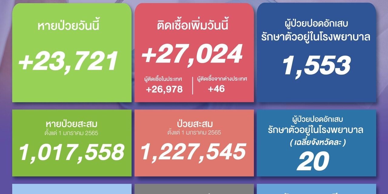 ผู้ป่วยสะสม 1,227,545 ราย (ตั้งแต่ 1 มกราคม 2565)