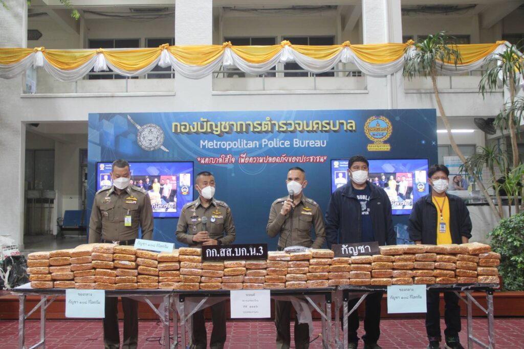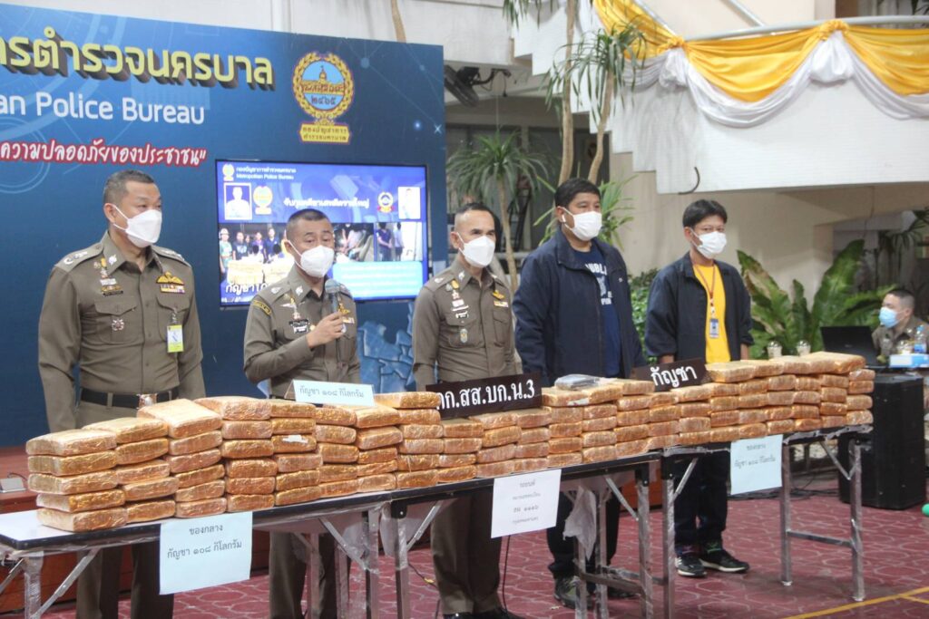 เมื่อวันที่ 22 มี.ค.65 เวลา 13.15 น.ณ ลานแถลงข่าว บช.น. : พล.ต.ท.สำราญ นวลมา ผบช.น. พร้อมด้วย พล.ต.ต.จิรสันต์ แก้วเเสงเอก รอง ผบช.น./โฆษก บช.น., พล.ต.ต.นิธิธร จินตกานนท์ รอง ผบช.น./รองโฆษก บช.น.,พ.ต.อ.นพรัตน์ สินมา รอง ผบก.น.3,พ.ต.อ.ศักยะ แสงวรรณ ผกก.สส.บก.น.3 และเจ้าหน้าที่ สส.บก.น.3 ร่วมแถลงข่าวการจับกุมคดียาเสพติดรายใหญ่ พร้อมของกลางกัญชา (ยาเสพติดให้โทษประเภท5) จำนวน 108 กิโลกรัม