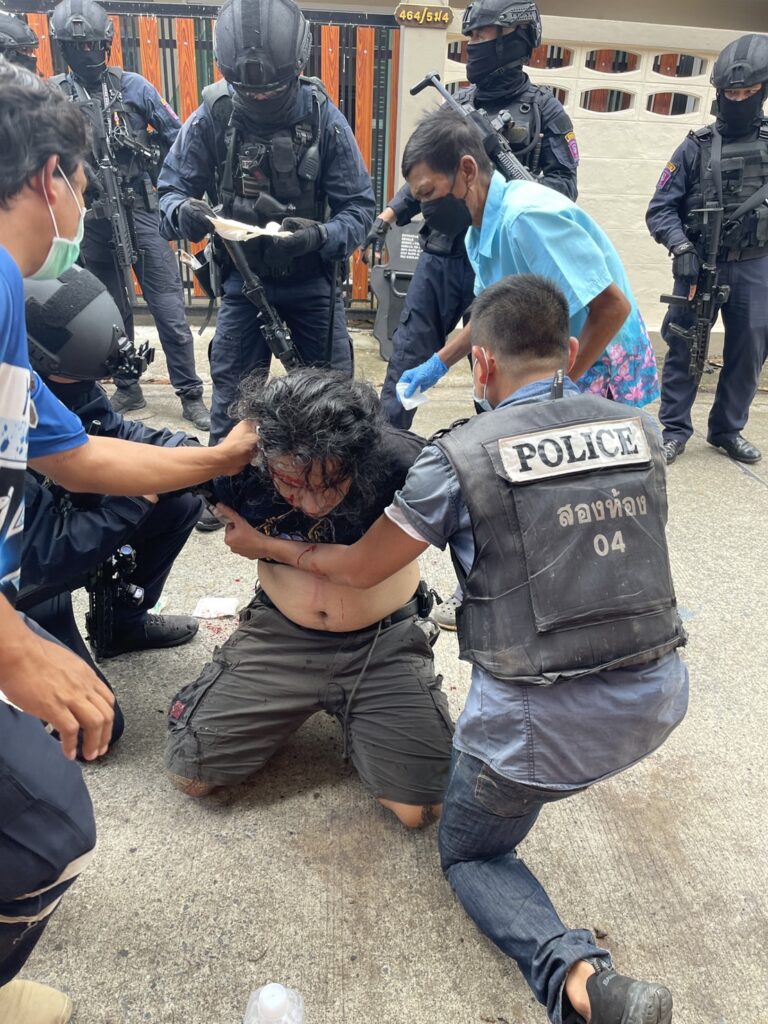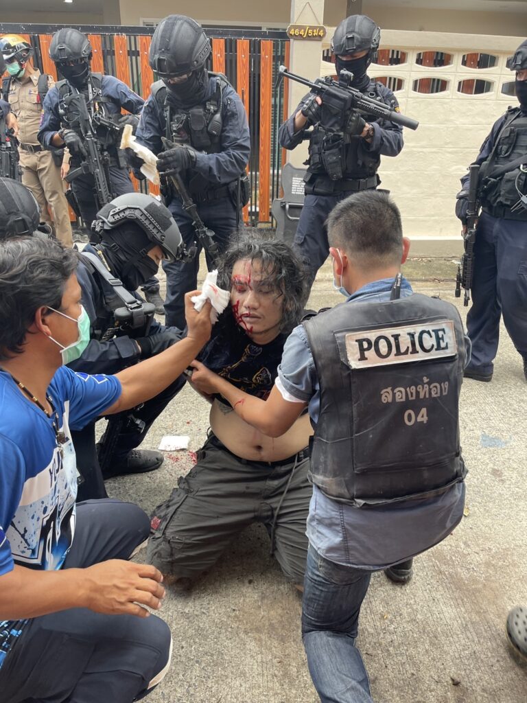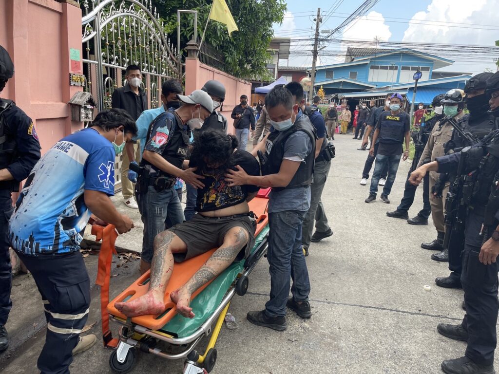 โดยจากการข่าวทราบว่าตั้งแต่เวลา04.00น.วันนี้ เจ้าหน้าที่ชุดสืบสวนพยายามเข้าไปเพื่อจับกุมนายวรชิต แซ่เตีย หรือเบนซ์ อายุ 28ปี แต่คนร้ายได้ใช้อาวุธปืนยิงออกมา1นัด เจ้าหน้าที่จึงวางกำลังปิดล้อมเพื่อรอเจ้าหน้าที่สนับสนุนกระทั่งเวลา05.00น.เจ้าหน้าที่ได้ใช้เวลาเจรจาเพื่อให้คนร้ายมอบตัวโดยให้พี่สาวเป็นคนเจรจา แต่ไม่คนร้ายไม่มีทีท่าจะยอมจำนน กระทั่งเกิดเสียงปืนดังขึ้น1นัด เจ้าหน้าที่พร้อมอาวุธครบมือจึงบุกเข้าไปภายในบ้านเพื่อจับกุมตัวเวลาประมาณ 10.40 น. โดยคนร้ายได้รับบาดเจ็บก่อนรถกู้ชีพเทศบาลเมืองคูคตนำตัวส่งรพ. โรงพยาบาล บี.แคร์ เมดิคอลเซ็นเตอร์ โดยมีเจ้าหน้าที่ตำรวจเดินทางไปควบคุมตัวคนร้ายเพื่อป้องกันการหลบหนี ซึ่งทางเจ้าหน้าที่จะได้ตรวจสอบภายในบ้านอีกครั้ง