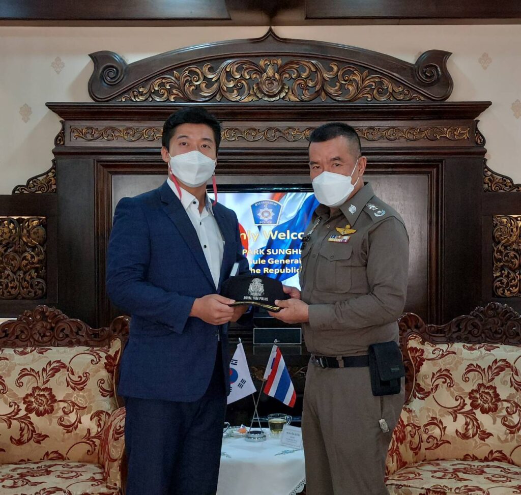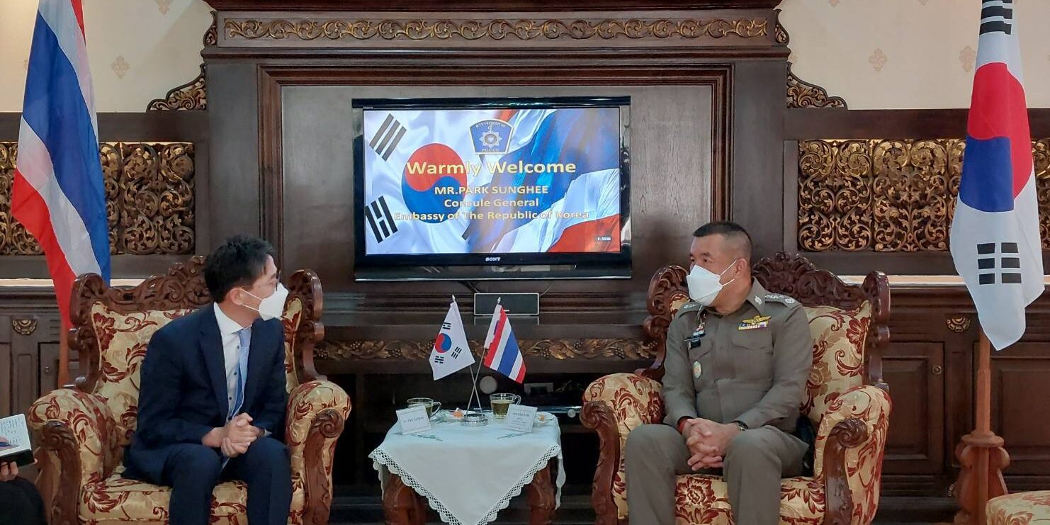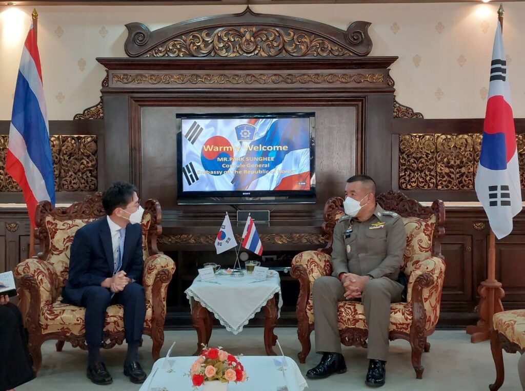 พล.ต.ท.ปิยะ ต๊ะวิชัย ผบช.ภ.5 ให้การต้อนรับ คุณปาร์ ซองฮี กงสุลใหญ่ ประจำสถานทูตฯเกาหลีประจำประเทศไทย พร้อมด้วย คุณฮัน กุกอิน กงสุลฝ่ายตำรวจฯ และคุณอัน ฮยอนจิน เจ้าหน้าที่สถานทูตฯ เนื่องในโอกาสที่คุณปาร์ ซองฮี ได้เข้ารับตำแหน่งกงสุลใหญ่ฯ ประจำประเทศไทย