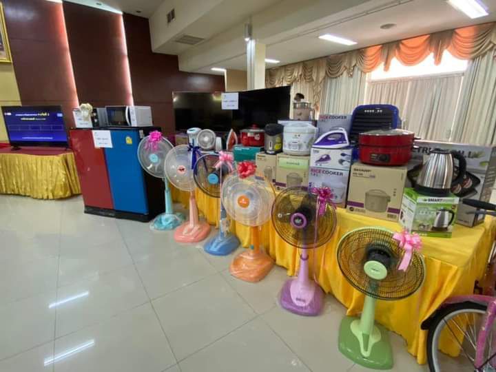 จากเจ้าหน้าที่สำนักงานสลากกินแบ่งรัฐบาลเป็นผู้ดำเนินการ และเชิญท่านผู้มีเกียรติร่วมหมุนวงล้อออกรางวัลต่างๆ ซึ่งมีถึง 8 รางวัล