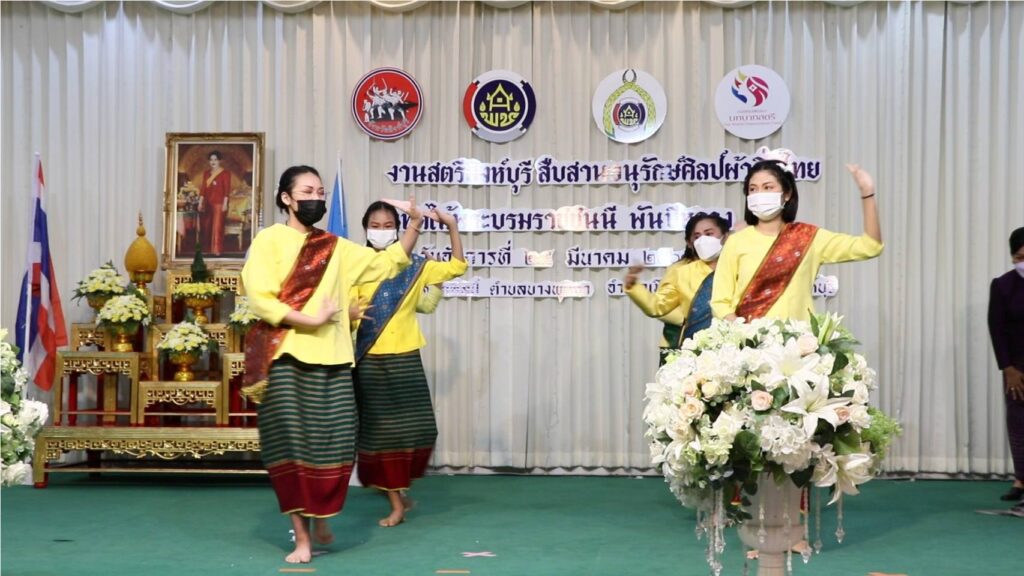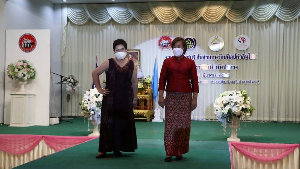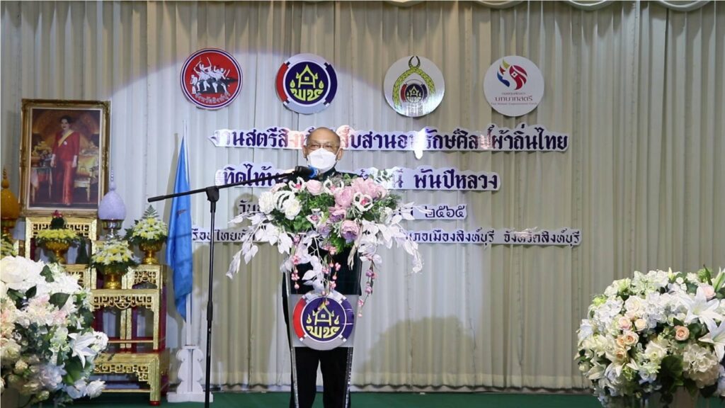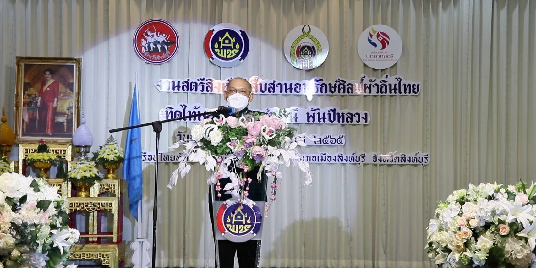 วันที่ 29 มีนาคม 2565 เวลา 10.00 น. นายชัยชาญ สิทธิวิรัชธรรม ผู้ว่าราชการจังหวัดสิงห์บุรี เป็นประธานในพิธีเปิดงาน”สืบสานอนุรักษ์ศิลป์ผ้าถิ่นไทย เทิดไท้พระบรมราชชนนี พันปีหลวง”และมอบรางวัลเชิดชูเกียรติให้กับสตรีที่มีผลงานดีเด่น ณ เรือนไทยหัตถศิลป์ จังหวัดสิงห์บุรี โดยมี นางวลัยวรรณ สุทธิ์โพธิ์ ประธานคณะกรรมการพัฒนาสตรีจังหวัดสิงห์บุรี นายกเหล่ากาชาดจังหวัดสิงห์บุรี รองผู้ว่าราชการจังหวัดสิงห์บุรี หัวหน้าส่วนราชการพร้อมด้วยคณะกรรมการ สืบสานพระราชปณิธาน สมเด็จพระนางเจ้าสิริกิติ์ พระบรมราชชนนี พันปีหลวง ในการอนุรักษ์ผ้าไทย ให้คงอยู่คู่แผ่นดิน เผยแพร่ประชาสัมพันธ์และรณรงค์การสวมใส่ผ้าไทย ให้เป็นที่รู้จักอย่างกว้างขวางเชิดชูเกียรติสตรีที่มีผลงานดีเด่น ส่งเสริมและสนับสนุนช่องทางการตลาดให้กับกลุ่มอาชีพสมาชิกกองทุนพัฒนาบทบาทสตรี