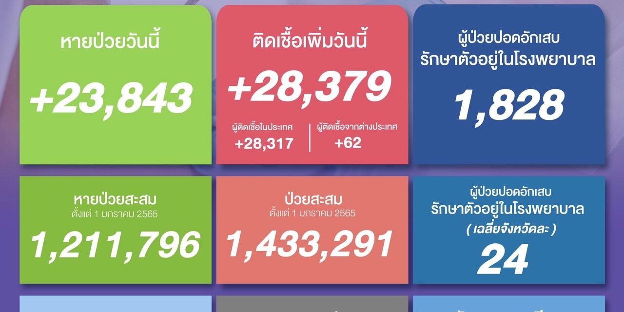 ผู้ป่วยสะสม 1,433,291 ราย (ตั้งแต่ 1 มกราคม 2565)
