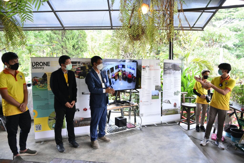 (การสำรวจ การเกษตร และการป้องกันอุบัติภัย)” ได้มุ่งเน้นสู่การพัฒนาเพื่อถ่ายทอดเทคโนโลยีโดรนระบบอัตโนมัติอากาศยานไร้คนขับ เพื่อประยุกต์ใช้งานการพัฒนาพื้นที่สูง การสำรวจ การเกษตร และการป้องกันอุบัติภัย คณะนักวิจัยพร้อมทดสอบประสิทธิภาพการทำงานระบบควบคุมอากาศยานไร้คนขับ (UAV) อัตโนมัติ ผ่านระบบเครือข่าย network 4G/5G ให้แก่คณะผู้บริหาร ผู้ทรงคุณวุฒิ (วช.) คณะสื่อมวลชน และประชาชนในพื้นที่ อำเภอดอยสะเก็ด จังหวัดเชียงใหม่