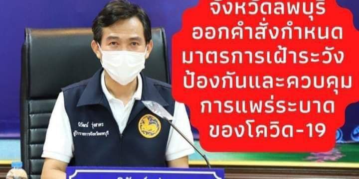 นายนิวัฒน์ รุ่งสาคร ผู้ว่าราชการจังหวัดลพบุรี แจ้งว่า จังหวัดลพบุรีได้มีคำสั่งจังหวัดลพบุรี ที่ 793/2565 ลงวันที่ 31 มีนาคม 2565 เรื่อง การกำหนดมาตรการเฝ้าระวัง ป้องกัน และควบคุมการแพร่ระบาด ของโรคติดเชื้อไวรัส โคโรนา 2019 (COVID-19) ที่เหมาะสมกับระดับพื้นที่สถานการณ์ โดยมีสาระสำคัญ คือ ให้ประชาชนทุกคนในพื้นที่จังหวัดลพบุรี สวมหน้ากากอนามัยหรือหน้ากากผ้าอย่างถูกวิธีตามข้อแนะนำของกระทรวงสาธารณสุขเมื่ออยู่นอก เคหะสถาน ขอความร่วมมือประชาชนหลีกเลี่ยง จำกัด หรืองดเว้นการเดินทางโดยไม่จำเป็น และขอความร่วมมืองดการจัดงานสังสรรค์ งานเลี้ยง งานรื่นเริง รวมถึงงดการรวมกลุ่มมั่วสุมเพื่อดื่มสุรา การลักลอบเล่นการพนันหรือ การกระทำผิดกฎหมายอื่นใดด้วย โดยยังไม่อนุญาตให้เปิดสถานบริการ สถานบันเทิง สถานเริงรมย์ ผับ บาร์ ร้านคารา โอเกะ อาบอบนวด ลานเบียร์ ยกเว้น ผู้ประกอบการสถานบริการที่ผ่านการประเมินจากคณะกรรมการฯ และได้รับอนุญาตจากคณะกรรมการโรคติดต่อจังหวัดฯ ให้ปรับรูปแบบเป็นร้านจำหน่ายอาหารหรือเครื่องดื่ม แล้ว สามารถเปิดบริการในรูปแบบร้านอาหารและเครื่องดื่มได้ ส่วนการจัดกิจกรรมของประชาชนมีข้อกำหนด คือ ห้ามการจัดกิจกรรม ซึ่งมีการรวมกลุ่มกันมากกว่า 1,000 คน หากเกินจำนวนที่กำหนดให้ขออนุญาตต่อนายอำเภอในพื้นที่