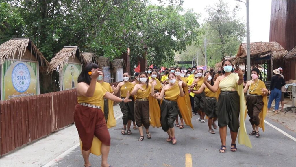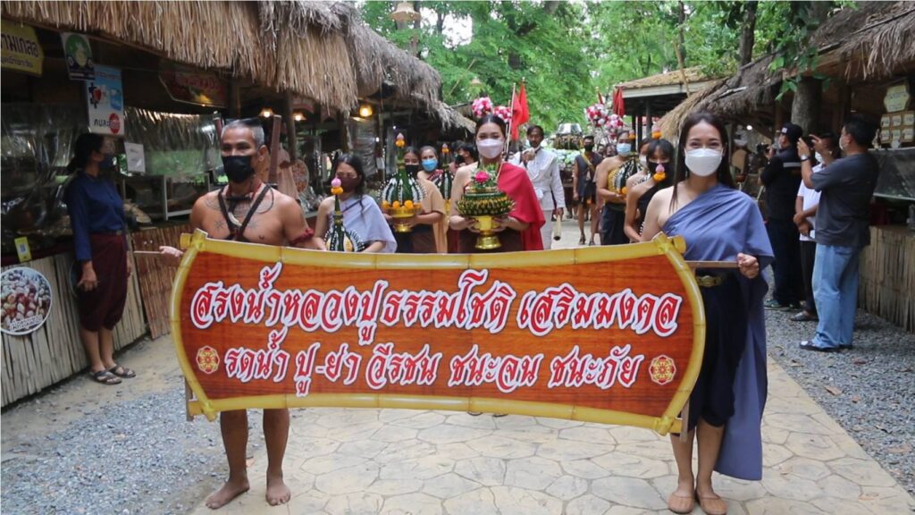 ด้วยสภาวะของโรคระบาดโควิด-19 ทางคณะกรรมการจัดงานสร้างความมั่นใจให้นักท่องเที่ยวด้วยการให้ผู้ค้าในตลาดไทยย้อนยุคบ้านบางระจัน จะต้องตรวจ ATK ทุกคนไม่ใช่แค่งานเท่านั้นทุกเสาร์อาทิตย์ ภายในตลาดมีทางเข้าออกสองช่องทางแต่ทั้งสองช่องทาง จะมีเจ้าหน้าที่คัดกรองตลอดทั้งวัน หากนักท่องเที่ยวไม่มั่นใจตัวเอง มีชุดตรวจ ATK บริการ นอกจากนี้ ผู้ที่เข้ามาจากนอกพื้นที่ การประกวดต่างๆ ที่มาจากต่างจังหวัดทุกคนต้องแสดงผลการตรวจ ATK ด้วย การประกวดหลานปู่หลานย่า ประกวดกลองยาว ยิ่งการประกวดพระมีการสัมผัสหรือจับ ต้องป้องกันโดยการสวมถุงมือพลาสติกอีกด้วย และที่สำคัญการสรงน้ำปีนี้ มีความสำคัญยิ่ง คือการสรงน้ำจะไม่สัมผัสใกล้ชิด เรียกได้ว่าการสรงน้ำลอยฟ้ามหากุศลถือว่าเป็นไฮไลท์ และน้ำที่จะใช้สรงน้ำจะเป็นน้ำที่เตรียมเอาไว้ในภาชนะระบบปิดถือว่าปลอดภัย นอกจากนี้ โรงพยาบาลค่ายบางระจันและสาธารณสุขอำเภอค่ายบางระจันจะเข้ามาช่วยดูแลอีกกำลังในเรื่องความพร้อมของแม่ค่าใส่แมส 100% มีจุดบริการแอลกอฮอล์ จุดล้างมืออย่างทั่วถึงหน้าร้านที่มีความเสี่ยงในการสัมผัส ต้องปกคลุมด้วยพลาสติกใส พวกเราพร้อมต้อนรับนักท่องเที่ยวอย่างปลอดภัยและปฏิบัติตามมาตรการป้องกันโควิด-19 อย่างเคร่งครัด