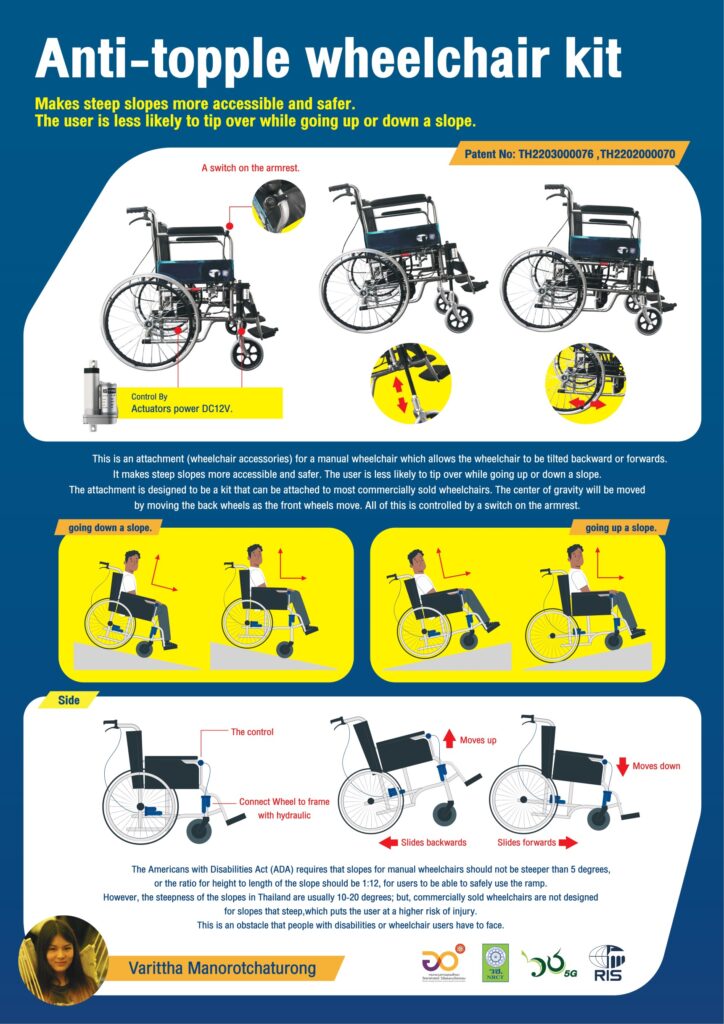 สำหรับงาน “Inventions Geneva Evaluation Days–Virtual Event” เป็นงานที่ได้รับการสนับสนุนจากรัฐบาลสวิสฯ อาทิ The Swiss Federal Government of the State และ The City of Geneva และองค์การทรัพย์สินทางปัญญาแห่งโลกหรือ The World Intellectual Property Organization (WIPO) ซึ่งจัดขึ้นตลอดช่วงเดือนมีนาคม 2565 ณ นครเจนีวา สมาพันธรัฐสวิส ในรูปแบบออนไลน์ ภายในงานมีผลงานเข้าร่วมประกวดและจัดแสดงนิทรรศการกว่า 500 ผลงาน จาก 20 ประเทศ โดย วช. ได้ร่วมกับหน่วยงานเครือข่ายพันธมิตรในการนำผลงานของนักวิจัย นักประดิษฐ์ไทย เข้าร่วมนำเสนอ จำนวน 35 ผลงาน จาก 17 หน่วยงาน ซึ่งเป็นที่น่ายินดี ที่การประกวดสิ่งประดิษฐ์ และนวัตกรรมระดับนานาชาติ ในงาน “Inventions Geneva Evaluation Day–Virtual Event” ในครั้งนี้ มีผลงานงานวิจัยเรื่อง “อุปกรณ์เสริมสำหรับเก้าอี้รถเข็น ขึ้นทางลาด” ของ นายจีระศักดิ์ จิตรโรจนรักษ์ และนางสาว