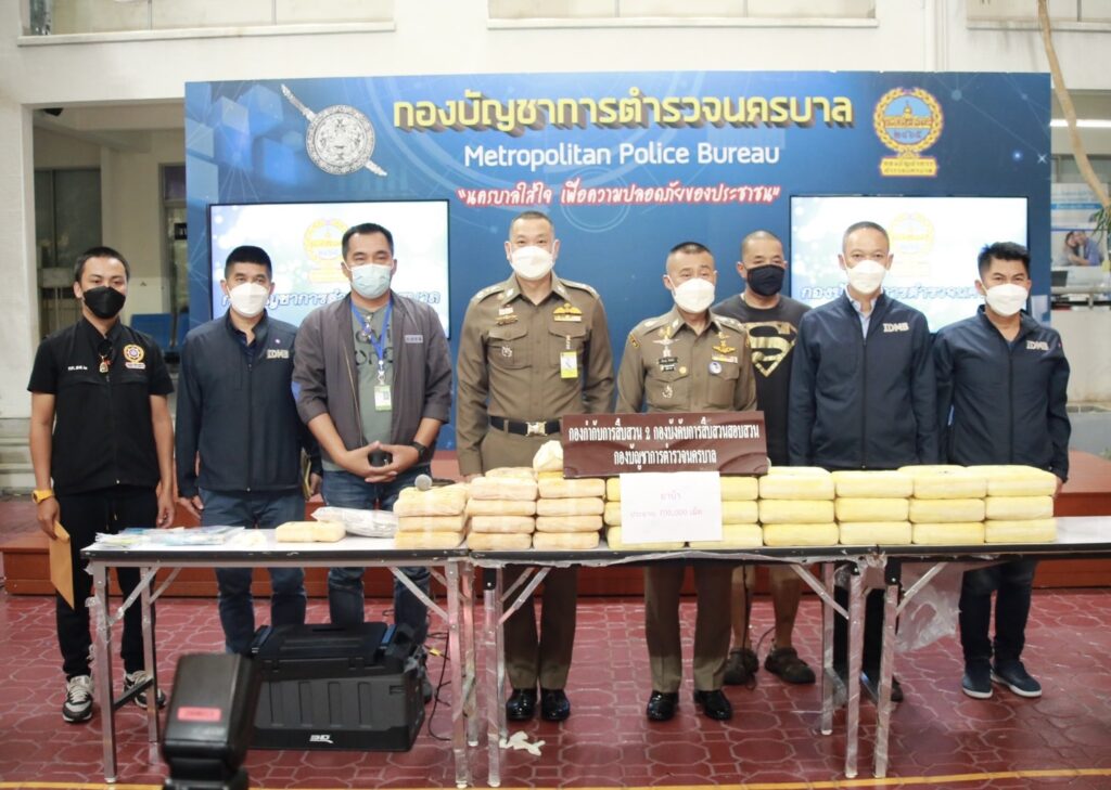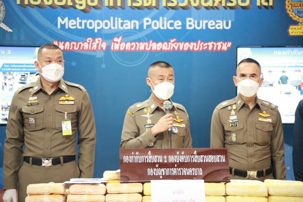 บก.สส.บช.น.,พ.ต.ท.สุชาติ มงคลพิพัฒน์,พ.ต.ท.ณัฐวุฒิ สีเสมอ รอง ผกก.กก.สส.2 บก.สส.บช.น.ร่วมกับเจ้าหน้าที่ตำรวจ กก.2 บก.สส.บช.น. ร่วมแถลงข่าวกรณีจับกุมยาเสพติด พร้อมของกลางยาบ้ากว่า 700,000 เม็ด