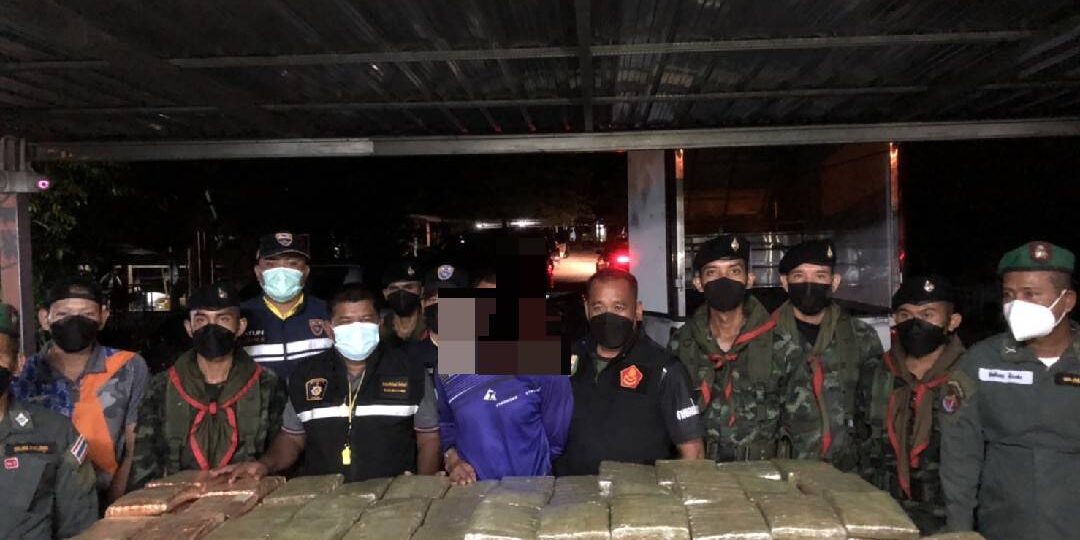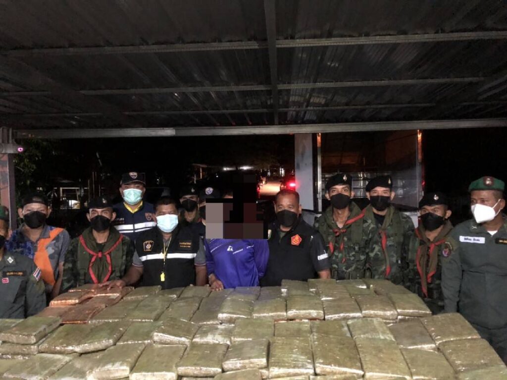 วันนี้ 6 เมษายน 2565 เมื่อคืนวันที่ 5 เมษายน 2565 ที่ ด่านตรวจความมั่นคง บริเวณหน้าฐานนปพ.ภ.จ.สตูล บนถนนยนตรการกำธร(สายหาดใหญ่-สตูล) หมู่ที่2 ต.ทุ่งนุ้ย อ.ควนกาหลง จ.สตูล ทหาร ร. 5 พัน 2 ร่วมกับ ตำรวจ นปพ.สตูล หรือหน่วยปฎิบัติการพิเศษกองกำการสืบสวน ภ.จว.สตูล เจ้าหน้าที่ ทหาร,ตำรวจ และฝ่ายปกครองท้องที่เจ้าหน้าที่ ส่งสัญญาณเข้าตรวจค้นมีกระดาษทิดชู่บังหน้าและตรวจค้นภายในรถพบกัญชาอักแท่งห่อด้วยถุงพล๊าสติกสีดำและห่อด้วยกระสอบปุ๋ยอีกชั้นในห่อใหญ่ อัดแน่นไปด้วย กัญชาอัดแท่ง ที่พันด้วยพลาสติกใส และ ห่อด้วยกระดาษฝอยทอง จำนวนหลายลัง ที่ขนมากับรถยนต์กระบะยี่ห้ออีซูซุดีแมคซ์ดัดแปลงเป็นตู้ทึบบรรทุกสินค้าป้ายทะเบียน 3 ฒฐ 9218 กรุงเทพฯได้ยึดเป็นของกลางและ จับกุมนายสมบัติ สาริวงศ์ อายุ44ปี บ้านอยู่ อ.เมือง จ.อำนาจเจริญ คนขับรถคันดังกล่าว โดยผู้ต้องหารับว่าตนเองรับจ้างขนกัญชา