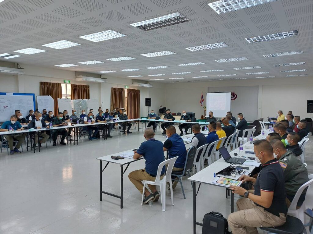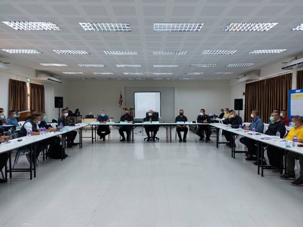 วันนี้ (6 เม.ย.65 ) เวลา 16.00 น. พล.ต.ท.ชินภัทร สารสิน ผู้ช่วย ผบ.ตร. พร้อมด้วย พล.ต.ท.ปิยะ ต๊ะวิชัย ผบช.ภ.5, พล.ต.ต.วีรชน บุญทวี รอง ผบช.ภ.5, พล.ต.ต.เฉลิมพล จินตรัตน์ รอง ผบช.ภ.2 ปฏิบัติราชการ ภ.5, พล.ต.ต.วรพงศ์ คำลือ ผบก.สส.ภ.5 และ เจ้าหน้าที่ที่เกี่ยวข้อง ลงพื้นที่ ตรวจเยี่ยม จนท. ผู้เข้ารับการฝึกอบรมโครงการฝึกอบรมหลักสูตรยุทธวิธีการลาดตระเวนป้องกันและปราบปรามยาเสพติดในพื้นที่ภาค5 ประจำปีงบประมาณ 2565 พร้อมทั้ง มอบนโยบายแก่ จนท. ผู้ที่เข้ารับการฝึกอบรมในครั้งนี้ ณ.ศูนย์ควบคุมห้องประชุมใหญ่ บก.ตชด.ภาค3