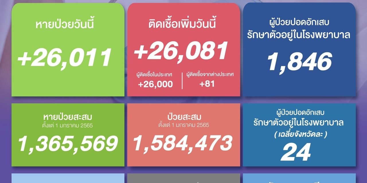 ผู้ป่วยสะสม 1,584,473 ราย (ตั้งแต่ 1 มกราคม 2565)