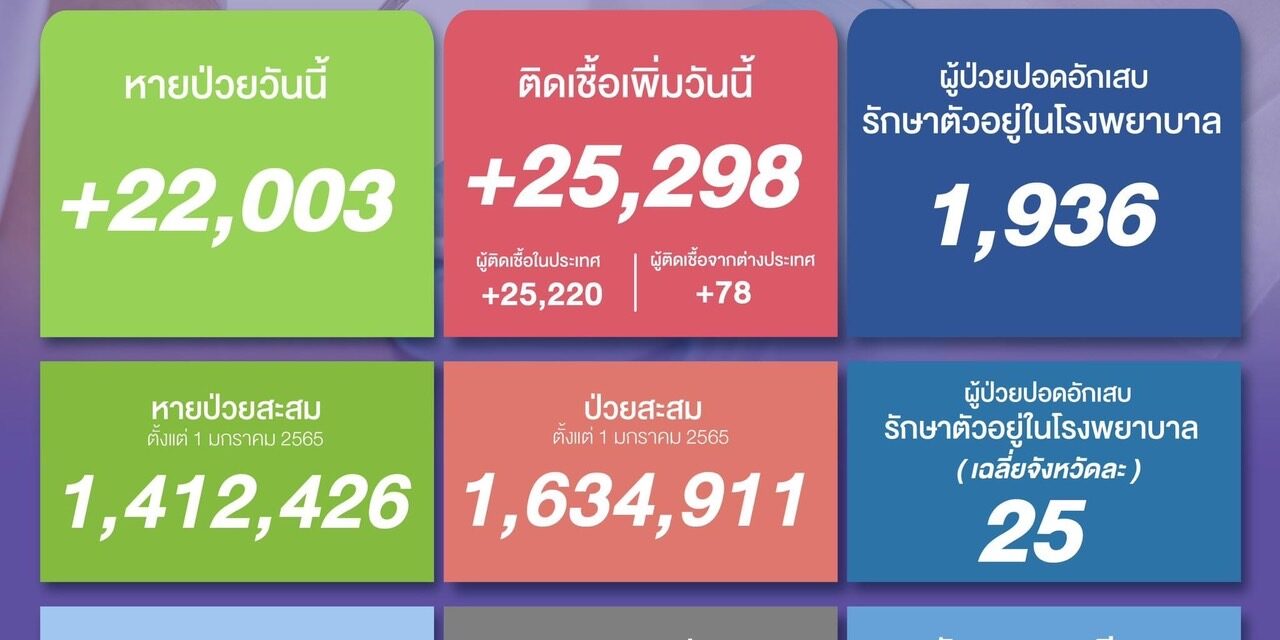 หายป่วยสะสม 1,412,426 ราย (ตั้งแต่ 1 มกราคม 2565)
