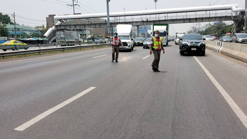 เมื่อเวลา 11.30 น. วันที่ 9 เม.ย. 65 สภาพการจราจรบนเส้นทางถนนพหลโยธินขาออกช่องทางด่วน ต.คลองหนึ่ง อ.คลองหลวง จ.ปทุมธานี เริ่มมีประชาชนทยอยเดินทางกลับบ้านต่างจังหวัดทางภาคเหนือและภาคอีสานเพื่อฉลองเทศกาลสงกรานต์ ประจำปี 2565 กันเป็นจำนวนมากทำให้มีปัญหารถชะลอตัวและเคลื่อนตัวได้ช้า โดยมีเจ้าหน้าที่ตำรวจจราจรสภ.คลองหลวง และเจ้าหน้าที่ตำรวจทางหลวงอยุธยาคอยอำนวยการจราจรตลอดเส้นทาง