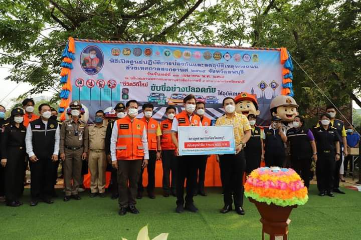 ทั้งนี้ การรณรงค์ลดอุบัติเหตุทางถนนเทศกาลสงกรานต์ปี 2565 ของจังหวัดลพบุรี มีภาคเอกชนที่ร่วมให้การสนับสนุนน้ำดื่ม เครื่องดื่ม สำหรับเจ้าหน้าที่ที่ปฏิบัติงานประจำจุดตรวจ จุดบริการโดยศูนย์ปฏิบัติการป้องกันและ ลดอุบัติเหตุทางถนนจังหวัดลพบุรี ได้บูรณาการร่วมกับหน่วยงานที่เกี่ยวข้องในพื้นที่ กำหนดช่วงเวลาดำเนินการควบคุมเข้มข้นระหว่างวันที่ 11-17 เมษายน 2565 ภายใต้หัวข้อหลักในการรณรงค์คือ “ชีวิตวิถีใหม่ ขับขี่อย่างปลอดภัย ไร้อุบัติเหตุ” ควบคู่กับการดำเนินการตามมาตรการและแนวทางการเฝ้าระวังป้องกันและควบคุมโรคติดเชื้อไวรัสโคโรนา 2019 โดยได้กราบอารธนา พระครูสิริจริยาภรณ์ เจ้าคณะอำเภอเมืองลพบุรี มาประพรมน้ำพระพุทธมนต์ แก่ผู้ร่วมพิธีเพื่อความเป็นสิริมงคล./