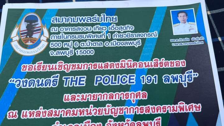 สมาคมพลร่มไทย ได้จัดแถลงข่าวความพร้อม ในการจัดกิจกรรม “การแสดงมินิคอนเสิร์ต โดย วงดนตรี THE POLICE 191 ลพบุรี และมายากลการกุศล” โดยมีพลตรี ภัทรชัย พันธ์กล้า นายกสมาคมพลร่มไทย และพันเอก สมเพชร ปาปะโข ฝ่ายกิจกรรมสมาคม ร่วมกันแถลงข่าว