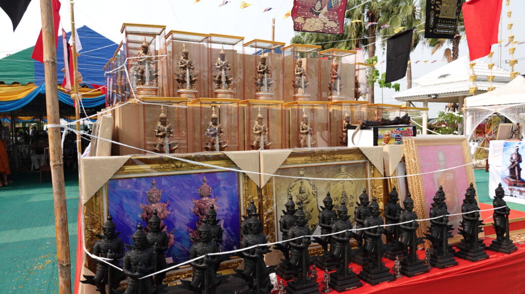 สำหรับรายการวัตถุมงคล ท้าวเวสสุวรรณจาตุมหาราชิกา และเหรียญท้าวเวสสุรรณ รุ่นรายพันล้าน ที่สร้างในครั้งนี้ 1.ท้าวเวสสุวรรณ ยืนสูง 24 นิ้ว จำนวน 9 องค์ 2.ท้าวเวสสุวรรณ ยืนสูง 9 นิ้ว จำนวน 29 องค์ 3.ท้าวเวสสุวรรณ ยืนสูง 5นิ้ว จำนวน 99 องค์ 4.ท้าวเวสสุวรรณ ยืนสูง 3นิ้ว จำนวน 99 องค์ 5.ท้าวเวสสุวรรณ หล่อโบราณเนื้อเงินยืนสูง 1.5 นิ้ว จำนวน 49 องค์ 6. ท้าวเวสสุวรรณ หล่อโบราณเนื้อสำริดยืนสูง 1.5 นิ้ว จำนวน 999 องค์ 7.ท้าวเวสสุวรรณยืน ครอบแก้ว ตั้งบูชาหน้ารถ จำนวน 299 องค์ และ 1.ท้าวเวสสุวรรณนั่ง หน้าตัก 5 นิ้ว จำนวน 49 องค์ 2.ท้าวเวสสุวรรณนั่ง หน้าตัก 3 นิ้ว จำนวน 99 องค์ 3.ท้าวเวสสุวรรณนั่ง หน้าตัก 1.5 นิ้ว จำนวน 99 องค์ ในส่วนของเหรียญท้าวเวสสุวรรณ ที่จัดสร้าง 1.เหรียญท้าวเวสสุวรรณ เนื้อเงิน จำนวน 80 เหรียญ 2.เหรียญท้าวเวสสุวรรณเนื้อนวะ จำนวน 49 เหรียญ 3.เหรียญท้าวเวสสุวรรณเนื้อทองทิพย์ จำนวน 199 เหรียญ 4.เหรียญท้าวเวสสุวรรณเนื้อทองทิพย์ ลงยาราชาวดี จำนวน 499 เหรียญ