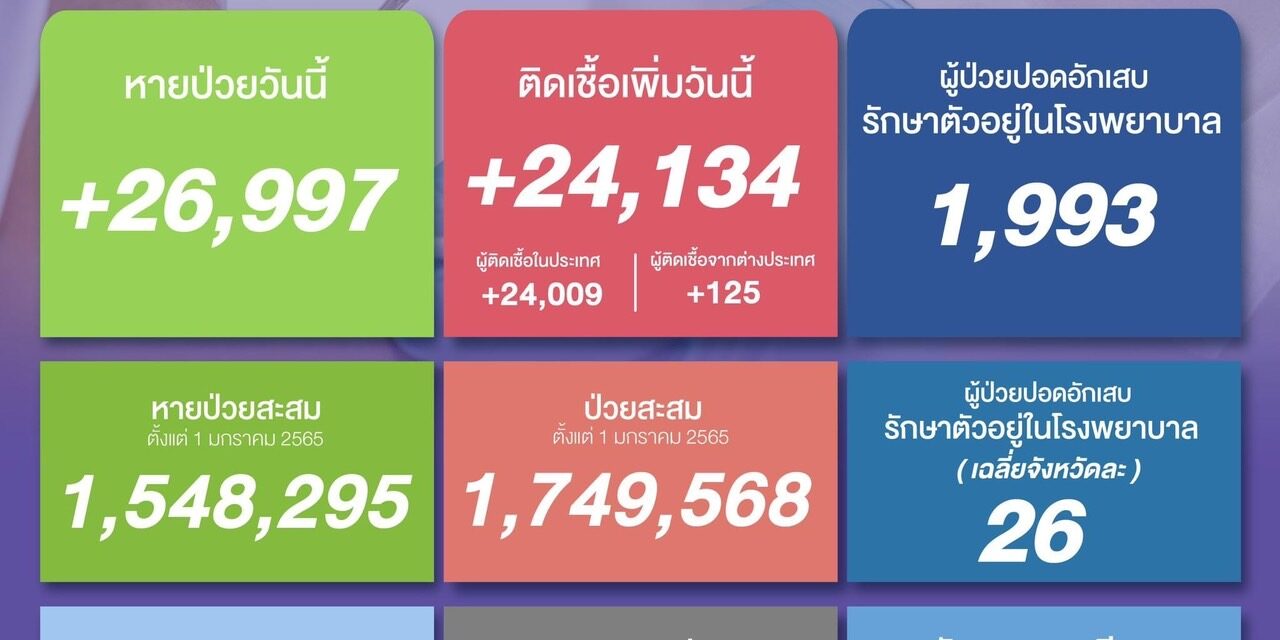หายป่วยสะสม 1,548,295 ราย (ตั้งแต่ 1 มกราคม 2565)