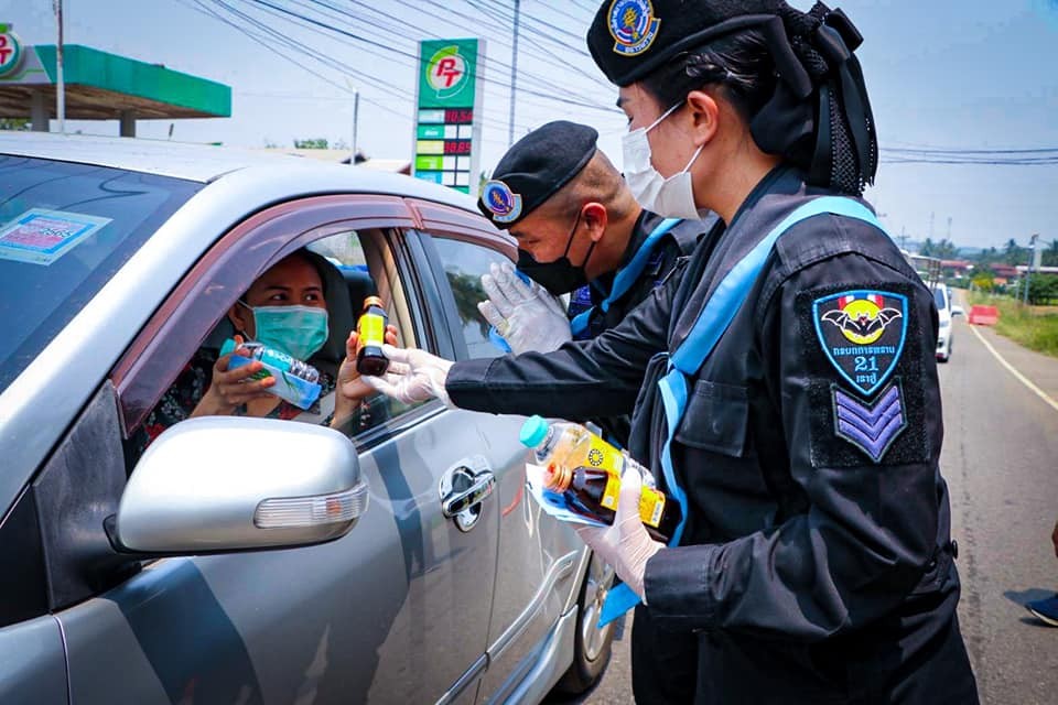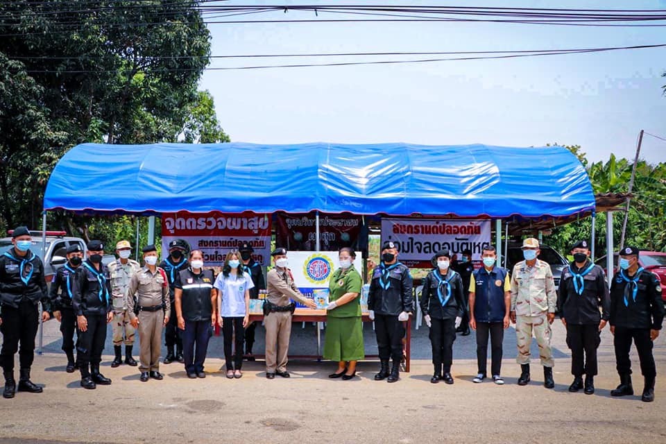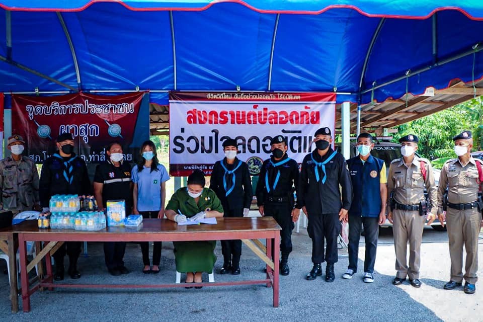 กองกำลังสุรศักดิ์มนตรี โดย คุณสิริกัญญา นิลเนตร ประธานสมาคมแม่บ้านทหารบก สาขา กรมทหารพรานที่ 21และพันโทณัฐวุฒิ มาฆะเซ็น รองผู้บังคับหน่วยเฉพาะกิจกรมทหารพรานที่ 21 พร้อมด้วยกำลังพลของหน่วยเข้าตรวจเยี่ยมจุดบริการประชาชนช่วงเทศกาลสงกรานต์ พร้อมทั้งอำนวยความสะดวกให้แก่ประชาชนในห้วงเทศกาลวันหยุดยาวสงกรานต์ ระหว่างวันที่ 11-17 เม.ย.65 ตามโครงการ “สงกรานต์ปลอดภัย กองทัพบกห่วงใยประชาชน Royal Thai Army” พร้อมทั้งพบปะเจ้าหน้าที่ มอบความห่วงใยในการปฏิบัติงานในห้วงสถานการณ์ COVID-19 และมอบสิ่งของอุปโภค – บริโภค เป็นผ้าเย็น น้ำดื่ม เครื่องดื่ม เพื่อสร้างขวัญกำลังใจให้กับเจ้าหน้าที่ที่มุ่งมั่นปฏิบัติหน้าที่ด้วยความเสียสละในช่วงเทศกาลรวมถึงประชาชนที่ขับรถสัญจรกลับภูมิลำเนาผ่านพื้นที่จุดบริการประชาชน ณ จุดบริการประชาชน จุดบริการประชาชน บ้านอาฮี หมู่ที่ 1 ตำบลอาฮี อำเภอท่าลี่ จังหวัดเลย และ จุดบริการประชาชนหน้า ด่านตรวจผาสุก ถนน บ้านนากระเซ็ง ตำบลอาฮี อำเภอท่าลี่ จังหวัดเลย