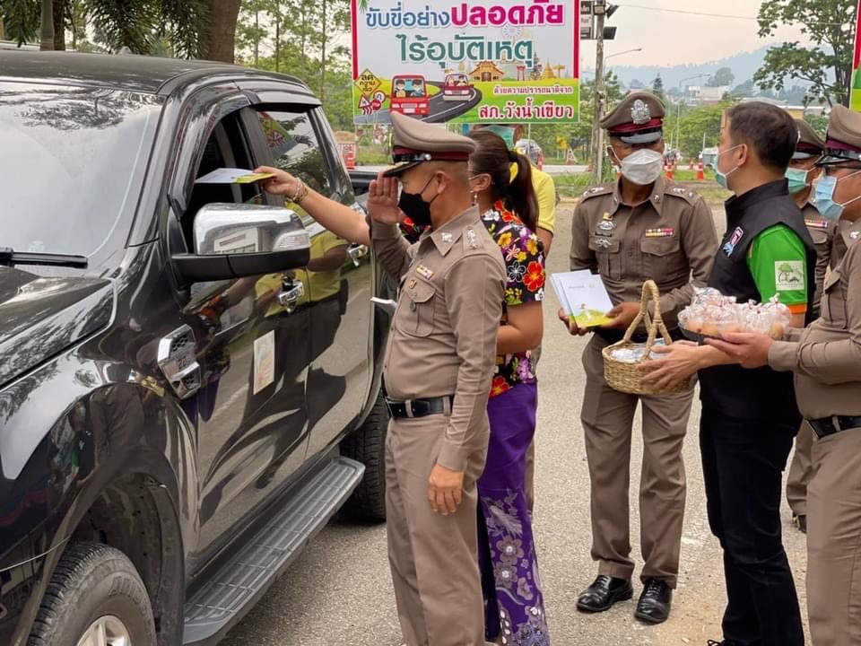 เมื่อวันที่ 13 เมษายน 2565 ที่ศูนย์อำนวยการป้องกัน และลดอุบัติเหตุทางถนนช่วงเทศกาลสงกรานต์ จุดบริการประชาชนสถานีตำรวจภูธรวังน้ำเขียว ถนน 304 วังน้ำเขียว-ปักธงชัย ตำบลวังน้ำเขียว อำเภอวังน้ำเขียว จังหวัดนครราชสีมา พ.ต.อ.พีรพงศ์ ธนโพธิ์ชัย ผกก.สภ.วังน้ำเขียว พร้อมด้วย พ.ต.ท.นิรันดร์ ถวัลย์ภูวนาถ รอง ผกก.ป.ฯ และตำรวจวังน้ำเขียวจิตอาสา ร่วมกับ นายพงษ์เทพ มาลาชาสิงห์ ประธานชมรมส่งเสริมการท่องเที่ยวอำเภอวังน้ำเขียว และ กต.ตร.สถานีตำรวจวังน้ำเขียว เจ้าหน้าที่ฝ่าย เจ้าหน้าที่ฮุก31 ตั้งจุดบริการอำนวยความสะดวกให้กับประชาชนที่เดินทางกลับภูมิลำเนาในวันนี้ ซึ่งเป็นวันสงกรานต์ วันปีใหม่ของชาวไทย