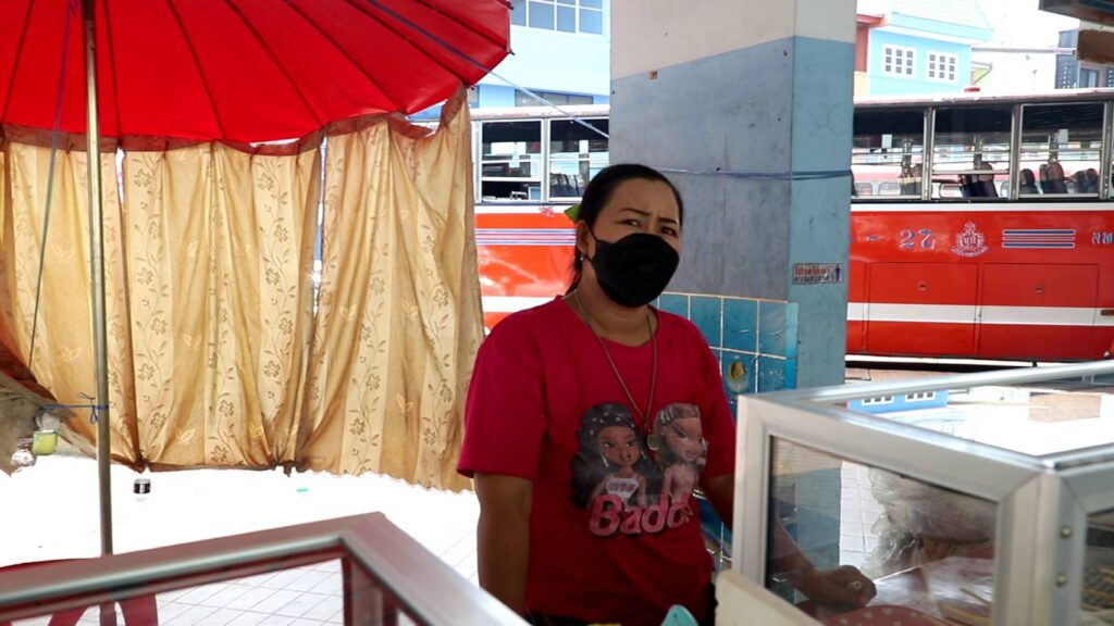 เช่นเดียวกับแม่ค้าขายลูกชิ้นทอดและของกินเล่นใน บขส. ก็บอกว่าสงกรานต์ปีนี้ไม่แตกต่างจากวันธรรมดาทั่วๆ ไปเลย ของก็ขายไม่ได้ แถมยังต้องลงทุนเพิ่มขึ้น ซึ่งน่าจะเกิดจากโควิด-19 จึงทำให้ประชาชนไม่เดินทางกัน และอีกสาเหตุน่าจะเป็นเพราะเศรษฐกิจค่าใช้จ่ายต่างๆ ที่แพงขึ้นทำให้คนไม่มีเงินเลยไม่เดินทางกันในช่วงสงกรานต์ ซึ่งต่างกับปีที่ก่อนจะเกิดโควิด-19 มาก ในปีก่อนเกิดโควิด ช่วงสงกรานต์ บขส.จะคึกคักมาก