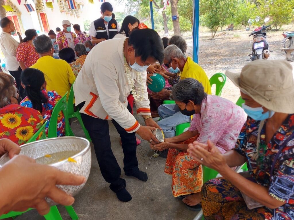 ลงพื้นที่ จัดกิจกรรม พิธี สงนำ้พระ ลดนำ้ ดำหัว ผู้สูงอายุ