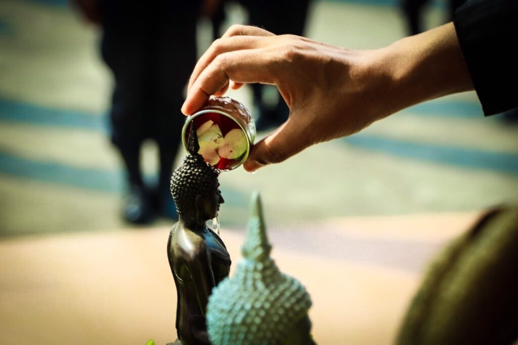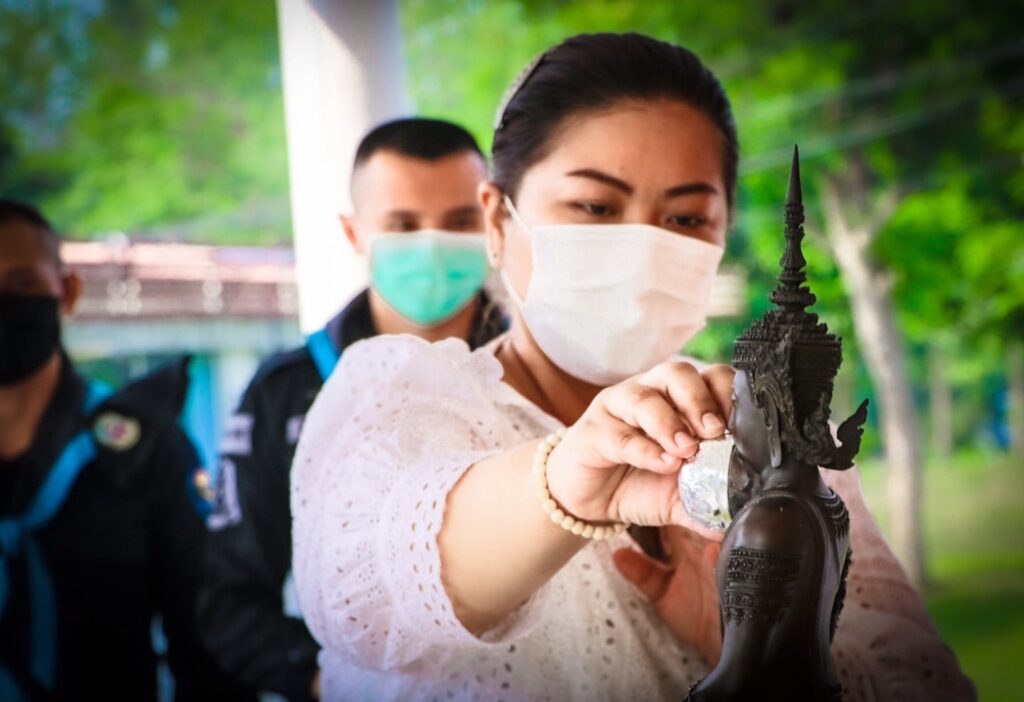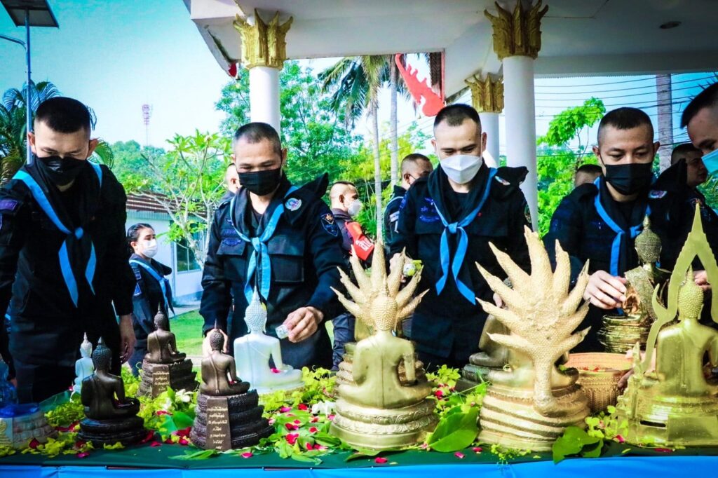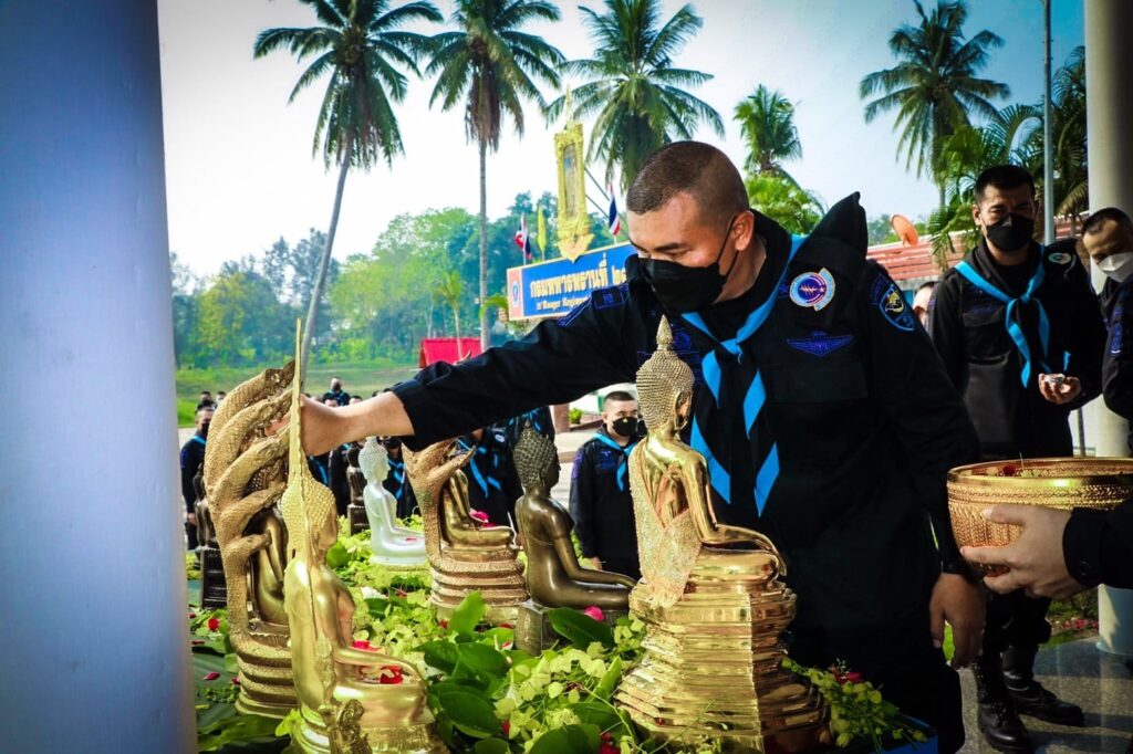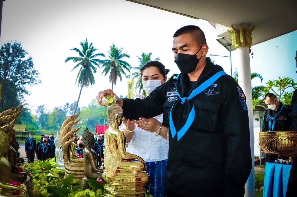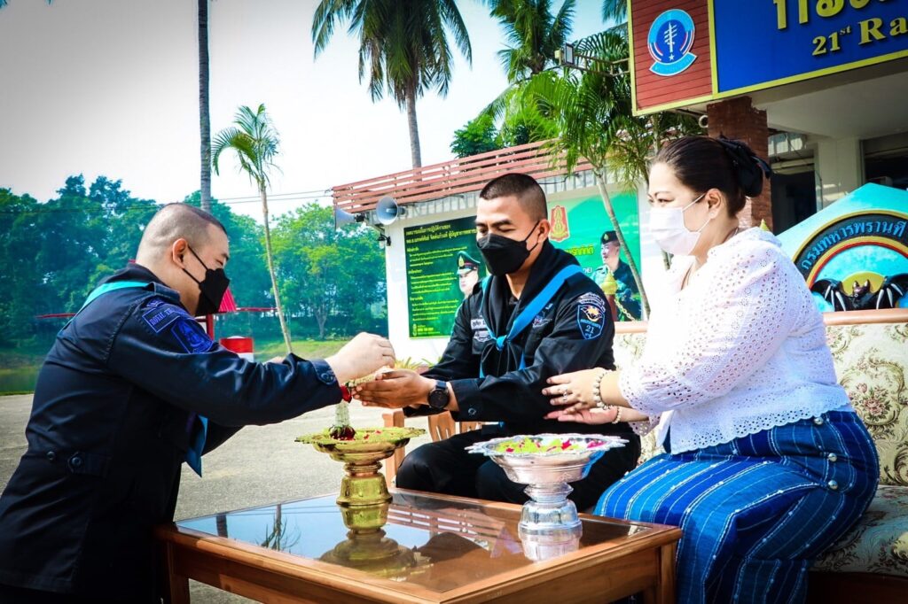 กองกำลังสุรศักดิ์มนตรี โดย พันเอกอุทัย นิลเนตร ผู้บังคับการกรมทหารพรานที่ 21/ผู้บังคับหน่วยเฉพาะกิจกรมทหารพรานที่ 21 (ผบ.กรม ทพ.21/ผบ.ฉก.ทพ.21) และคุณสิริกัญญา นิลเนตร ประธานสมาคมแม่บ้านทหารบก สาขา กรมทหารพรานที่ 21 พร้อมด้วยกำลังพลของหน่วยร่วมกิจกรรมสรงน้ำพระพุทธรูป เนื่องในวันสงกรานต์ ประจำปี 2565 พิธีสรงน้ำพระ “พระพุทธรูปสมเด็จองค์ปฐม มหามิ่งมงคล” และพระพุทธรูปประจำหน่วย เพื่อความเป็นสิริมงคล ทั้งยังได้เพื่อสืบสาน รักษา ต่อยอด ประเพณีการรดน้ำขอพรวันสงกรานต์ตามประเพณีวัฒนธรรมอันงดงามล้ำค่าของไทยไว้ให้อยู่คู่ผืนแผ่นดินไทยตลอดไป ณ ศาลารวมจิต สถิตสมเด็จองค์ปฐม มหามิ่งมงคล กรมทหารพรานที่ 21 ค่ายศรีสองรัก อ.เมือง จ.เลย