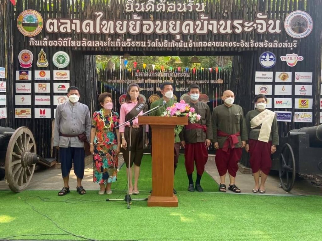วันพฤหัสบดีที่ ๑๔ เมษายน พ.ศ. ๒๕๖๕ เวลา ๑๒.๓๙ น. นายชัยชาญ สิทธิวิรัชธรรม ผู้ว่าราชการจังหวัดสิงห์บุรี เป็นประธานและมอบรางวัลการประกวดหลานปู่หลานย่าบ้านระจันและให้การต้อนรับ นายชัยวุฒิ ธนาคมานุสรณ์ รัฐมนตรีว่าการกระทรวงดิจิทัลเพื่อเศรษฐกิจและสังคม ให้เกียรติเป็นประธานกิจกรรมสรงน้ำมหามงคล งานมหาสงกรานต์ “สรงน้ำหลวงปู่ธรรมโชติ เสริมมงคล รดน้ำปู่ย่าวีรชนชนะจน ชนะภัย”ร่วมด้วย นางจิตติวรรณ สิทธิวิรัชธรรม นายกเหล่ากาชาดจังหวัดสิงห์บุรี นายสัมฤทธิ์ กองเงิน นายสมชาย ลีหล้าน้อย รองผู้ว่าราชการจังหวัดสิงห์บุรี หัวหน้าส่วนราชการจังหวัดสิงห์บุรี เจ้าหน้าที่ภาครัฐและเอกชน และประชาชนให้การต้อนรับ ณ บริเวณลานธรรม ตลาดไทยย้อนยุคบ้านระจัน วัดโพธิ์เก้าต้น อำเภอค่ายบางระจัน จังหวัดสิงห์บุรี โดยร่วมสรงน้ำหลวงปู่ธรรมโชติและรดน้ำผู้สูงอายุบ้านระจัน เพื่อเป็นสิริมงคลในช่วงเทศกาลสงกรานต์ พ.ศ.๒๕๖๕ ฟื้นฟูเศรษฐกิจจากโควิด-19 ประชาชนในท้องถิ่นมีรายได้ส่งเสริมการท่องเที่ยวจังหวัดสิงห์บุรี