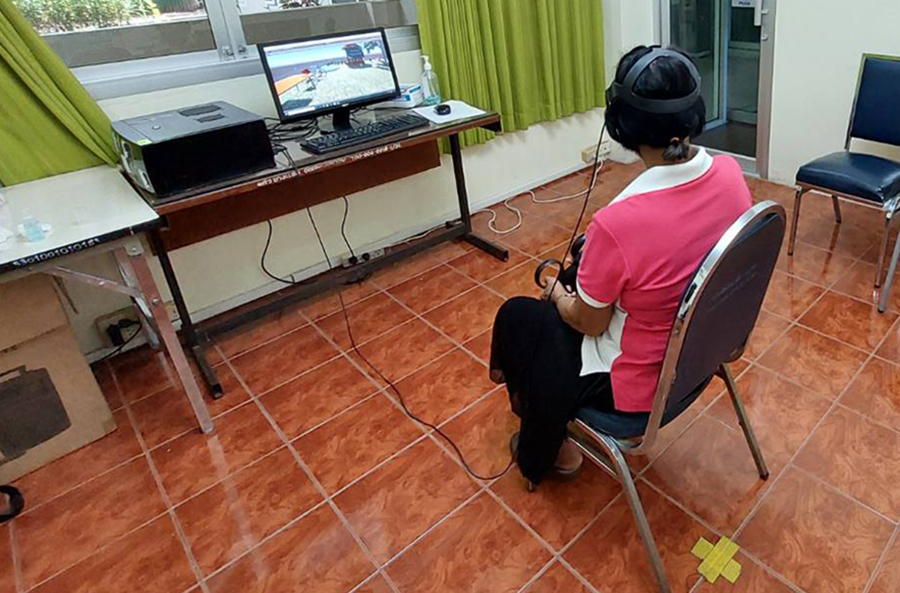 ทั้งนี้มีการสร้างโปรแกรมคอมพิวเตอร์ โดยใช้ Unity 3D ร่วมกับ Google Cardboard และโปรแกรม MAYA จำลองสภาพแวดล้อมเสมือนจริงเพื่อให้ผู้ใช้เกิดความรู้สึกเสมือนจริงของการเข้าร่วมอยู่ในสิ่งแวดล้อมที่ไม่ได้มีอยู่จริง ที่สร้างโดยคอมพิวเตอร์