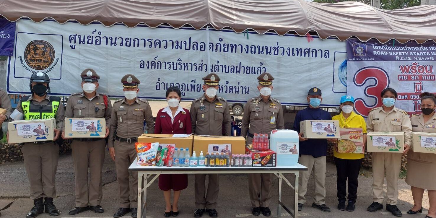 พบ พล.ต.ต.ดุลเดชา อาชวะสมิตระกูล ผบก.ภ.จว.น่าน, พ.ต.อ.บุญส่ง นิกรเถื่อน ผกก.สภ.ภูเพียง พร้อมข้าราชการตำรวจในสังกัด, ฝ่ายปกครอง และเจ้าหน้าที่สาธารณสุข อยู่ปฏิบัติหน้าที่ด้วยความเคร่งครัด ทั้งนี้ได้กำชับและเน้นย้ำการปฏิบัติให้เป็นไปตามข้อสั่งการของ ผบ.ตร. พร้อมทั้งได้มอบสิ่งของบำรุงขวัญ เพื่อเป็นขวัญและกำลังใจในการปฏิบัติหน้าที่ต่อไป ณ จุดตรวจแยกฝายแก้ว สภ.ภูเพียง ต.ฝายแก้ว อ.ภูเพียง จว.น่าน