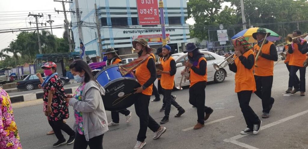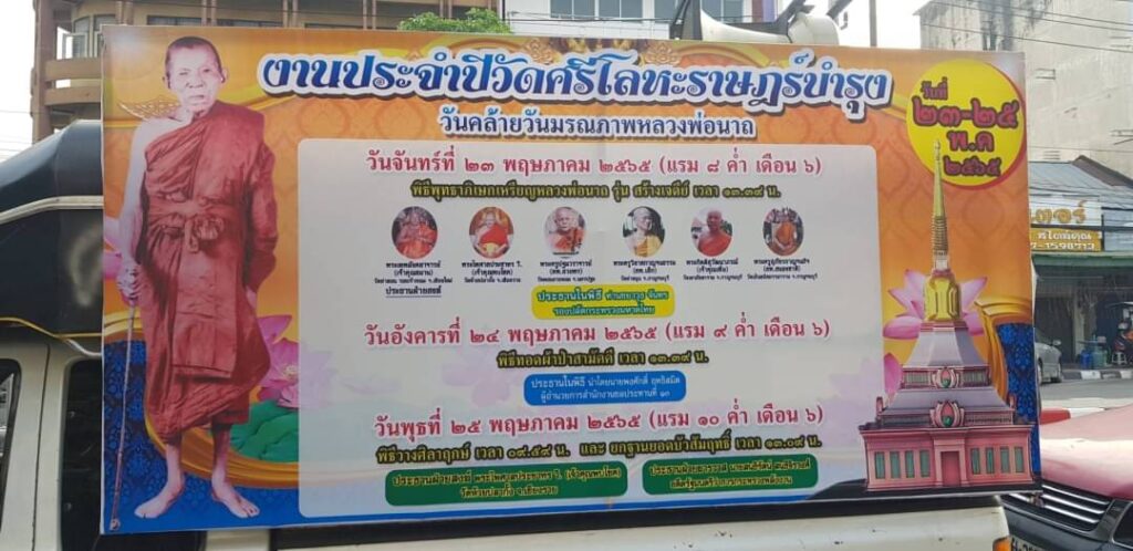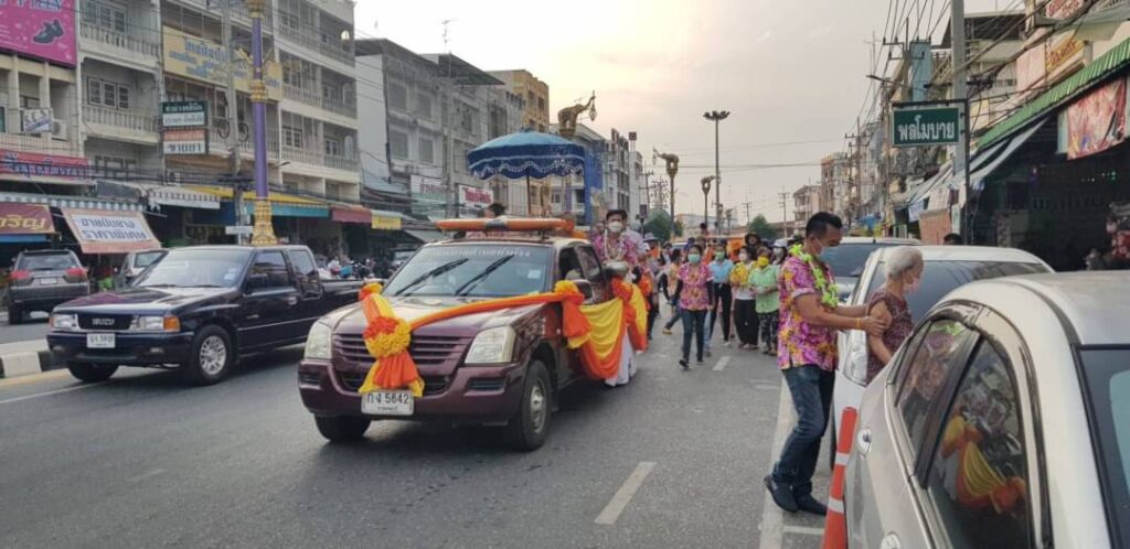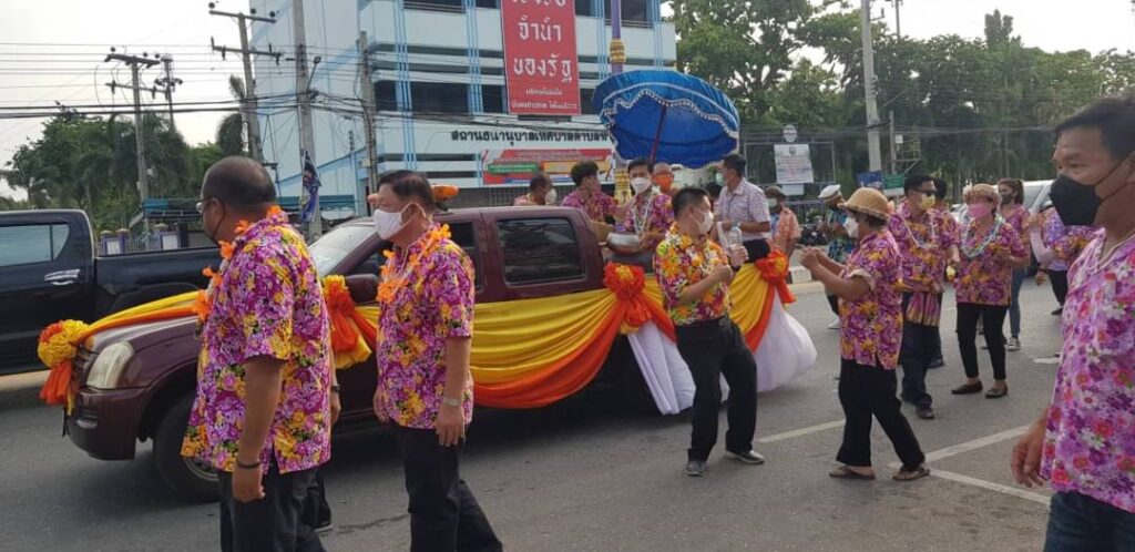 เมื่อเวลา 16.30 น. วันที่ 17 เมษายน 2565 นายฑรัท เหลืองสอาด นายอำเภอท่าม่วง นายชัยยุทธ วัฒโน นายกเทศมนตรีตำบลท่าม่วง พร้อมด้วย คณะผู้บริหารฯ นายวิชยุต ลิขิตรุ่งเรือง ประธานสภา ทต.ท่าม่วง สมาชิกสภาเทศบาลฯ และ จนท.ทต.ท่าม่วง จัดขบวนแห่รูปหล่อหลวงพ่อนารถ ให้ประชาชนได้สรงน้ำรับพร เนื่องในวันสงกรานต์ของชาวจังหวัดกาญจนบุรี 17 เมษายน 2565 โดยขบวนเริ่มจากหน้าโรงพยาบาลสมเด็จพระสังฆราชองค์ที่ 19 เคลื่อนผ่านตลาดไปยังวัดศรีโลหะราษฎร์บำรุง อ.ท่าม่วง จ.กาญจนบุรี ตลอดเส้นทาง มีประชาชนนำน้ำผสมน้ำอบกลิ่นหอมคลุ้งมาร่วมสรงน้ำรูปหล่อหลวงพ่อนารถและถวายเงินใส่บาตรร่วมบุญ จากนั้นพระสงฆ์ปะพรมน้ำมนต์และมอบวัตถุมงคล ให้กับประชาชน เพื่อความเป็นสิริมงคล