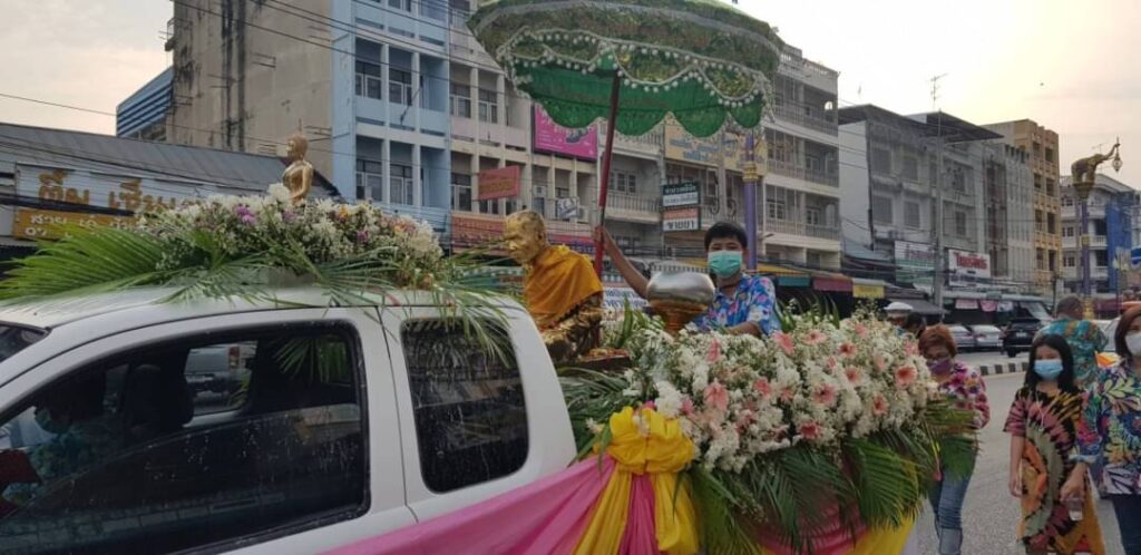 นายชัยยุทธ วัฒโน นายก ทต.ท่าม่วง เปิดเผยว่า เนื่องจากสถานการณ์การแพร่ระบาดโควิด 19 เทศบาลตำบลท่าม่วง ได้งดจัดกิจกรรมรื่นเริงต่างๆในเทศกาลสงกรานต์ อาทิ กิจกรรมวันผู้สุงอายุ การรดน้ำขอพรผู้สูงอายุ เพื่อป้องกันการแพร่ระบาดโควิด 19 โดยในปีนี้ เทศบาลฯ ร่วมกับ วัดศรีโลหะราษฎรบำรุง จัดขบวนแห่รูปหล่อหลวงพ่อนารถ เพื่อให้ประชาชนได้สรงน้ำพระ เป็นสิริมงคลแก่ชีวิต และเพื่อสืบสานประเพณีไทยที่ปฏิบัติสืบทอดกันมา
