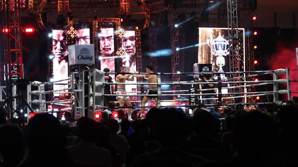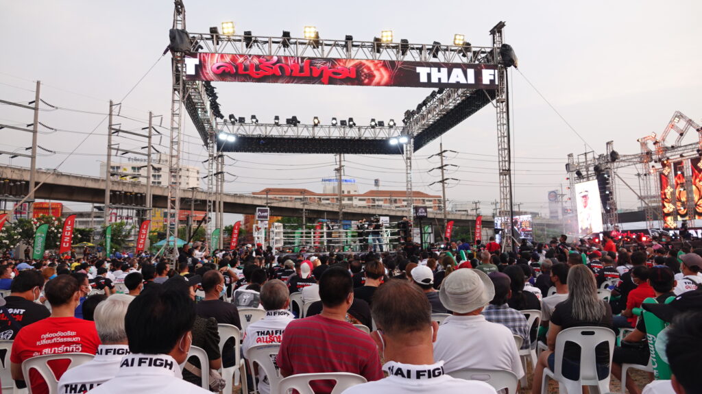 บรรยากาศในการแข่งขันชกมวยไทยมีประชาชนพาครอบครัวมากว่า 3,000 คน รับชมความยิ่งใหญ่ของมวยไทยสุดมันส์ แสง สี เสียง ที่ตื่นตาตื่นใจ ภายใต้มาตรการป้องกันโควิด -19 มีการตรวจคัดกรอง ATK วัดอุณหภูมิร่างกาย แสดงผลการฉีดวัคซีนป้องกันโรคโควิด-19 ครบ 2 เข็ม สวมหน้ากากอนามัย เว้นระยะห่าง และมีเจ้าหน้าที่ตำรวจ สภ.ประตูน้ำจุฬาลงกรณ์ดูแลความเรียบร้อย