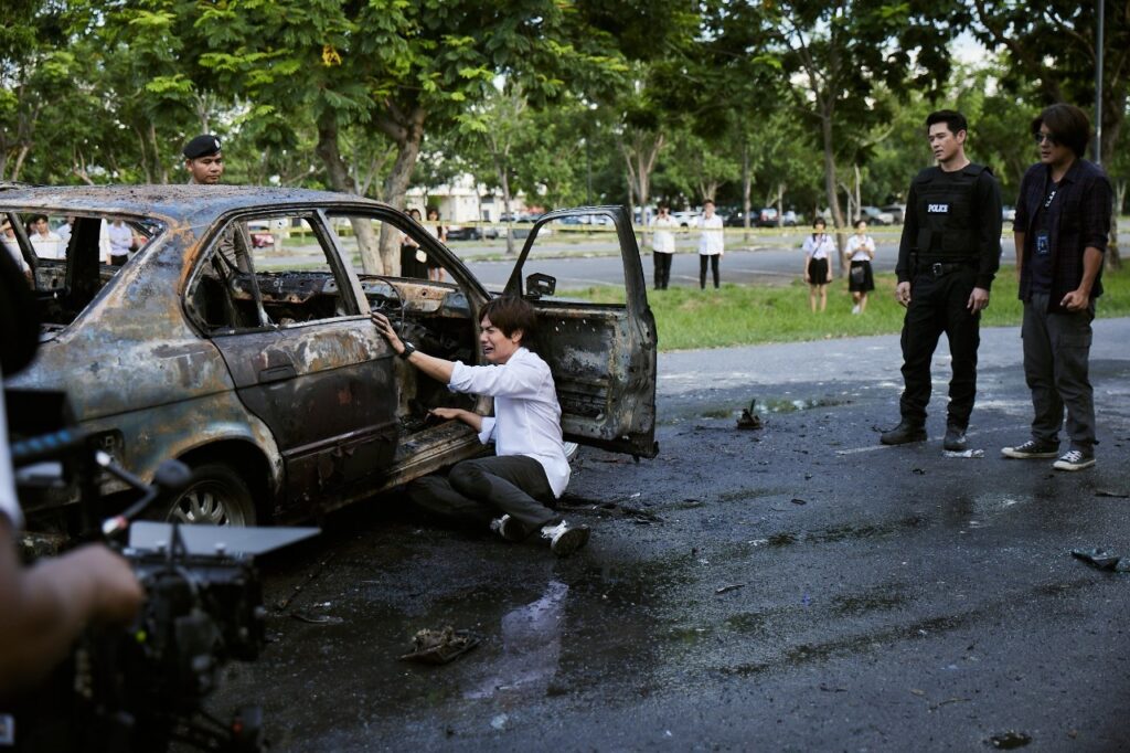 หลังถ่ายทำฉากระเบิดเสร็จ ฉากต่อไปเป็นฉากดราม่าครั้งสำคัญของ หนุ่มจุง-อาเชน ที่เขาบอกว่าเป็นฉากที่ยากที่สุดในชีวิตการแสดง เพราะเป็นฉากที่ต้องใช้อารมณ์เศร้าและร้องไห้แบบสุดขีด ก่อนถ่ายทำฉากนี้หนุ่มจุง จึงขอเวลาสักครู่ เพื่อทำอารมณ์กับฉากนี้