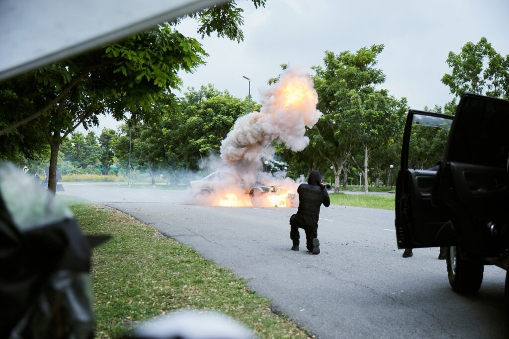 ฉากระเบิดในแต่ละฉาก จะมีทีมงานคอยเซฟตี้ทุกฝ่ายเป็นอย่างดี เพราะ คุณโจ ผู้จัดฯ + ผู้กำกับฯ คำนึงถึงความปลอดภัยของนักแสดงและทีมงานเป็นสำคัญ