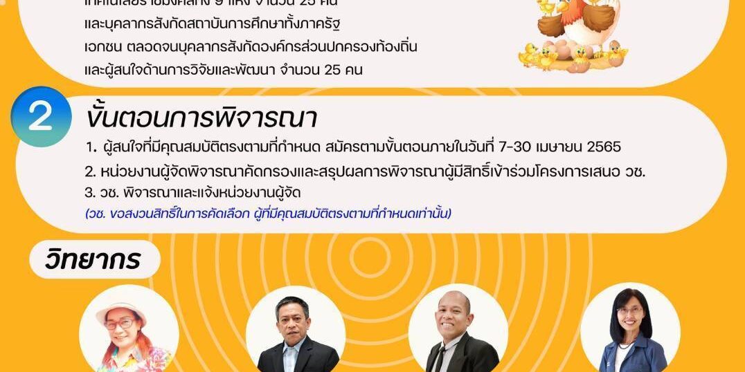 3.(วช.) พิจารณาและแจ้งหน่วยงานผู้จัด (วช.) “ขอสงวนสิทธิ์ในการคัดเลือก ผู้ที่มีคุณสมบัติตรงตามกำหนดเท่านั้น”