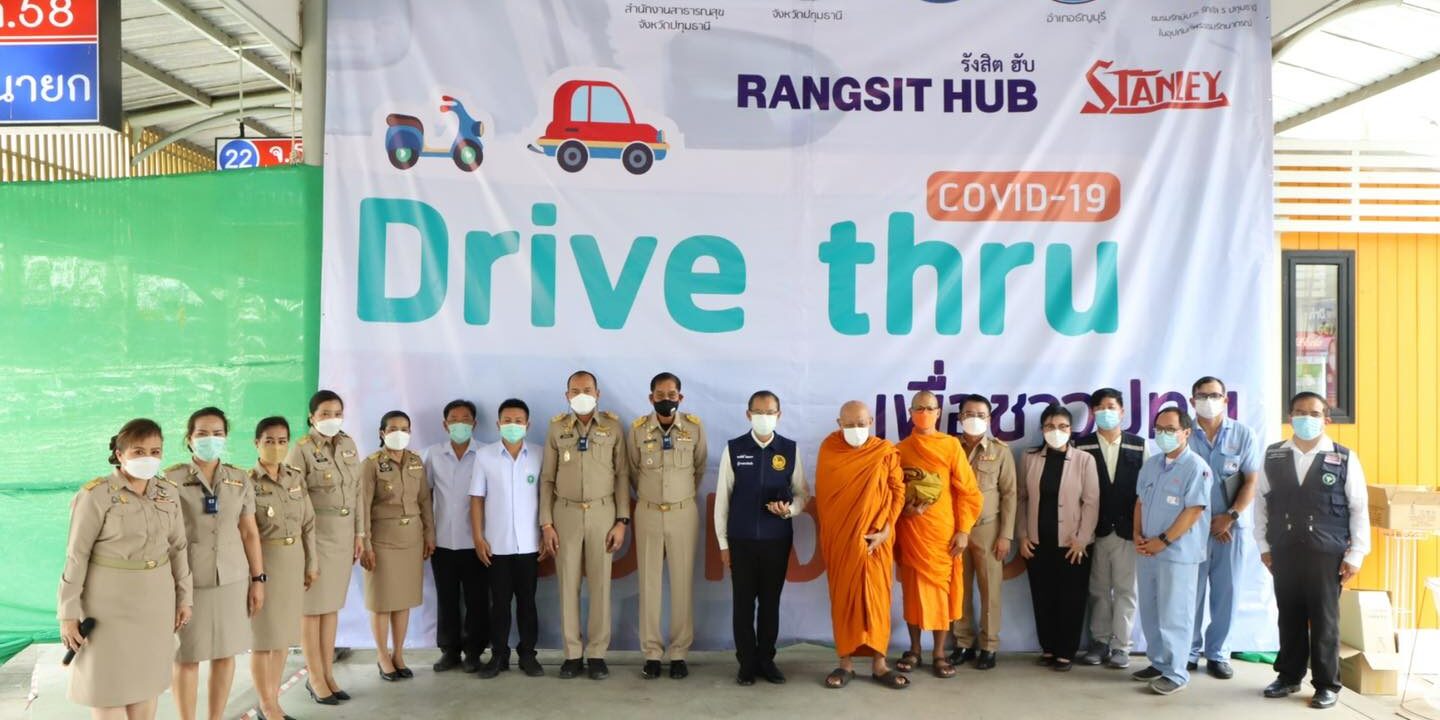 วันที่ 18 เมษายน 2565 ที่ท่ารถตู้รังสิตฮับ RANGSIT HUB อำเภอธัญบุรี จังหวัดปทุมธานี นายณรงค์ศักดิ์ โอสถธนากร ผู้ว่าราชการจังหวัดปทุมธานี เป็นประธานเปิดโครงการ Drive Thru เจอ แจก จบ เพื่อชาวปทุม โดยมี พระธรรมรัตนาภรณ์ เจ้าอาวาสวัดเขียนเขต พลตำรวจโทคำรณวิทย์ ธูปกระจ่าง นายกองค์การบริหารส่วนจังหวัดปทุมธานี นางสาวกันตรัตน์ เริ่มสูงเนิน นายอำเภอธัญบุรี ร้อยตำรวจเอก ดร.ตรีลุพธ์ ธูปกระจ่าง นายกเทศมนตรีนครรังสิต นายแพทย์ภุชงค์ ไชยชิน นายแพทย์สาธารณสุขจังหวัดปทุมธานี นางสาวฐิต์ณัฐ สมบัติศิริ วัฒนธรรมจังหวัดปทุมธานี นางสิริวิมล เหมะธุรินทร์ พัฒนาสังคมและความมั่นคงของมนุษย์จังหวัดปทุมธานี นางพรอัปสร นิลจินดา ประชาสัมพันธ์จังหวัด และหน่วยงานที่เกี่ยวข้องเข้าร่วมจากสถานการณ์การแพร่ระบาดของเชื้อไวรัสโคโรนา 2019 ตั้งแต่ปี 2563 มาจนถึงปัจจุบัน พ.ศ.2565 ส่งผลให้เกิดการเปลี่ยนแปลงครั้งใหญ่ ทั้งด้านสุขภาพ เศรษฐกิจ สังคมและวิถีชีวิตของประชาชน